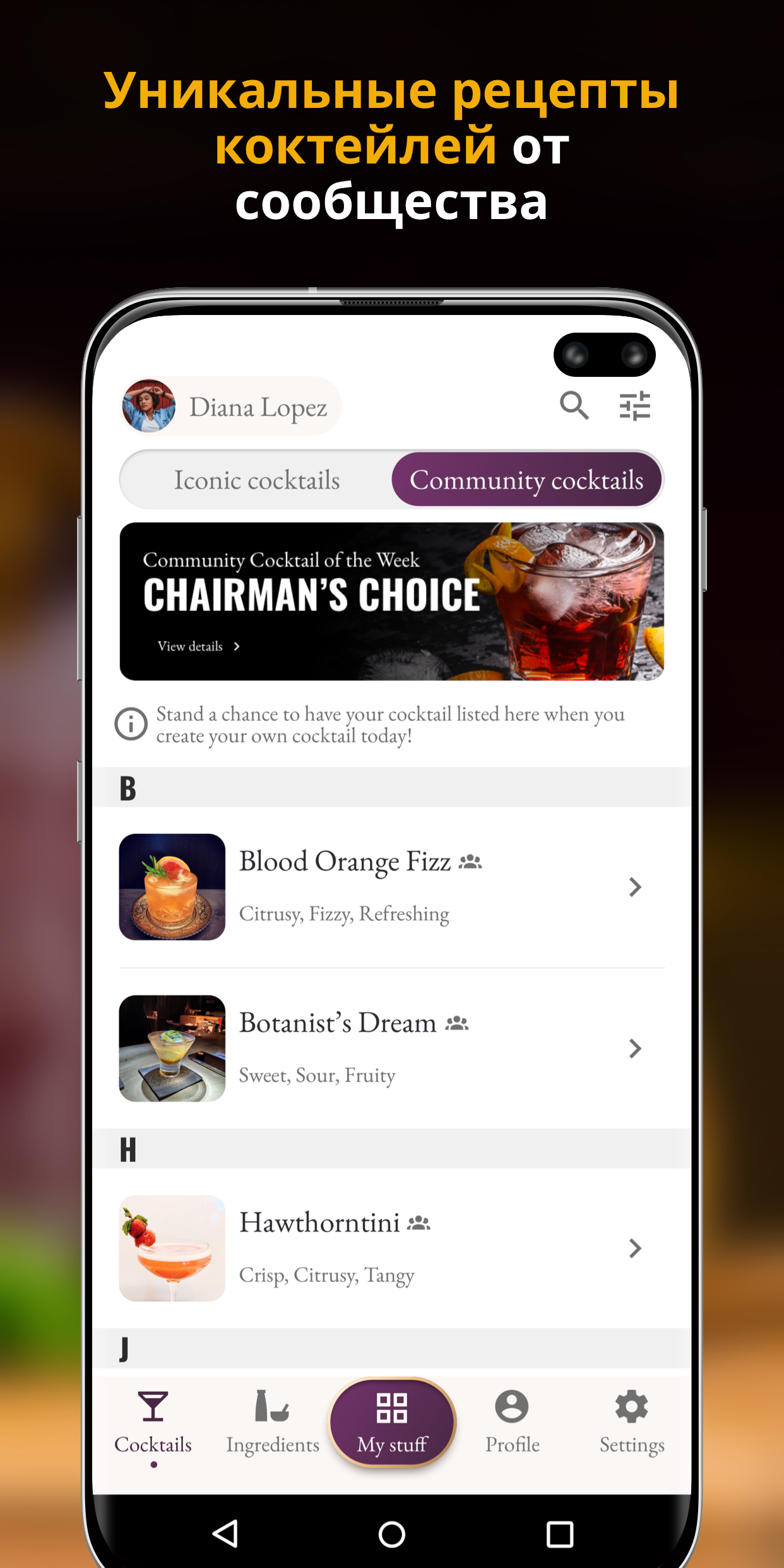 Ознакомьтесь с нашими Коктейлями Сообщества, где Вы сможете открыть для себя и научиться делать уникальные коктейли, созданные другими пользователями по всему миру. Вы также можете создать собственные рецепты коктейлей в своем профиле и получить шанс участвовать в программе Коктейли сообщества.