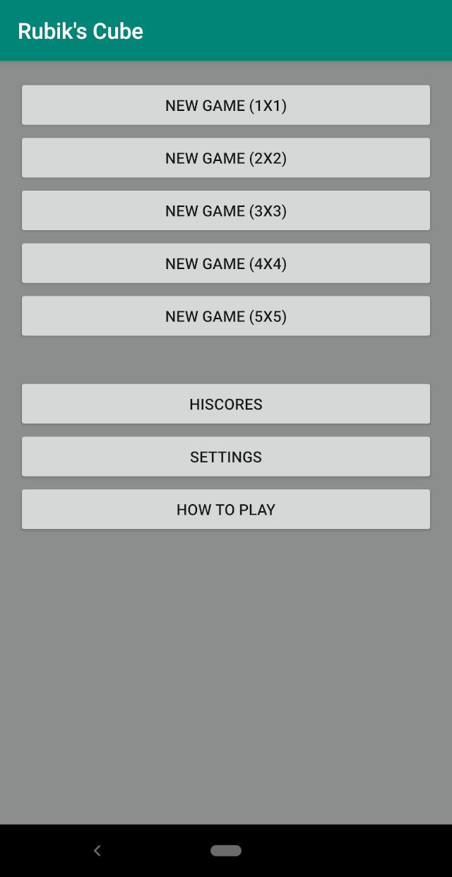 Solve the Rubik's cube in one of five available difficulties. Game features: - 5 game modes: 1x1, 2x2, 3x3, 4x4 and 5x5 - 3D Rubik's cube with animations - Configurable animation and randomisation speeds - Personal statistics including solving time, moves used and games finished - Supported languages: English, Finnish - No advertisements and completely free!