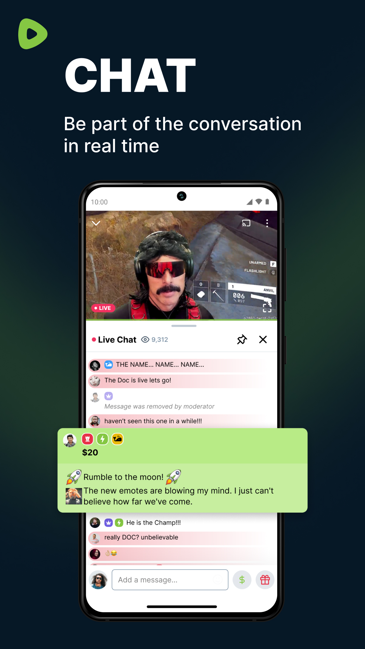 Welcome to Rumble: The Future of Video & Live Streaming 🚀 Tired of censorship and restrictive algorithms, or looking for a true YouTube alternative? Rumble is a freedom-first video-sharing app built for viewers who believe in free speech and an open Internet. Here, you can watch live streams, share video, explore Shorts, and enjoy a place where independent voices can speak freely. 💬 WHAT OUR USERS SAY ABOUT RUMBLE ⭐️ "Rumble is a strong YouTube alternative for live streams and real opinions." ⭐️ "I watch videos and Shorts here every day." ⭐️ "This app gives independent voices more freedom than YouTube." ⭐️ "Great streaming app with live shows and fresh voices." ⭐️ "I discover new channels all the time." ⭐️ "Rumble is my alternative to YouTube for free expression." Join millions of users and top creators who use Rumble to watch video, follow live streams, discover content, and enjoy a free platform built around open expression. 🎥 WHY RUMBLE IS THE RIGHT VIDEO PLATFORM FOR YOU Whether you want news, politics, podcasts, gaming, sports, or culture, Rumble brings together video, streaming, Shorts, and original content in one app. Watch live shows, discover creators, and enjoy an alternative to YouTube that puts creators first on a platform built for open conversation. • Unfiltered & Uncensored: share content freely in a free space • Seamless Streaming: watch live streams and join the conversation • Explore Trending Topics: discover video, Shorts, and more content There’s a reason Rumble is a fast-growing video app. Millions use this YouTube alternative to watch live streams, discover new content, and support creators in a free platform for open conversation and streaming. 🎬 RUMBLE SHORTS: FREE SPEECH WITH EVERY SWIPE Rumble Shorts brings short-form video into a smooth scrolling experience. Watch Shorts, discover content, and explore creators faster in a streaming feed built for discovery on a creator-first platform. • Watch Shorts in a continuous feed • Discover creators through Shorts and video • Explore trending Shorts and content 🎙️ EXCLUSIVE ON RUMBLE: THE LINEUP Rumble is home to The Lineup, a daily schedule featuring top voices discussing news, politics, and culture: • 9am ET – Dear America with Graham Allen • 10am ET – The Dan Bongino Show • 11am ET – Steven Crowder • 12pm ET – Timcast & Scrolling with Hayley on Bongino Report • 1pm ET – DeVory Darkins • 2pm ET – The Quartering • 3pm ET – Viva Frei and Russell Brand on M/W/F • 4pm ET – Redacted • 5pm ET – Kim Iversen • 6pm ET – The Crucible • 8pm ET – TimcastIRL Plus: Dr Disrespect bringing gaming streams to Rumble 🎮 🔴 THE DAN BONGINO SHOW Exclusive to Rumble, the Dan Bongino Show delivers sharp commentary and timely analysis from Bongino each weekday. • The Dan Bongino Show airs Monday through Friday at 10am ET • Watch Bongino live and join the discussion 💸 RUMBLE WALLET Rumble Wallet gives users a direct way to support the creators they enjoy. Wallet functionality is built into the app, making it easy to contribute during live streams and streaming events. • Use Rumble Wallet to support creators directly • Wallet allows tipping with cryptocurrency • Support happens in real time during shows FEATURES THAT EMPOWER CREATORS 💰 Rumble is built with creators in mind. • Monetize content from day one • Strong revenue opportunities on a free platform RUMBLE FEATURES AT A GLANCE ✅ Streaming & Live Chat ✅ Rumble Shorts ✅ Channel Creation ✅ Video Hosting ✅ Smooth Streaming ✅ Monetization Tools Download Rumble today and watch video, explore Shorts, discover creators, and enjoy a free YouTube alternative built for streaming content on an open platform. Free to be entertained. Free to create. Free to speak.