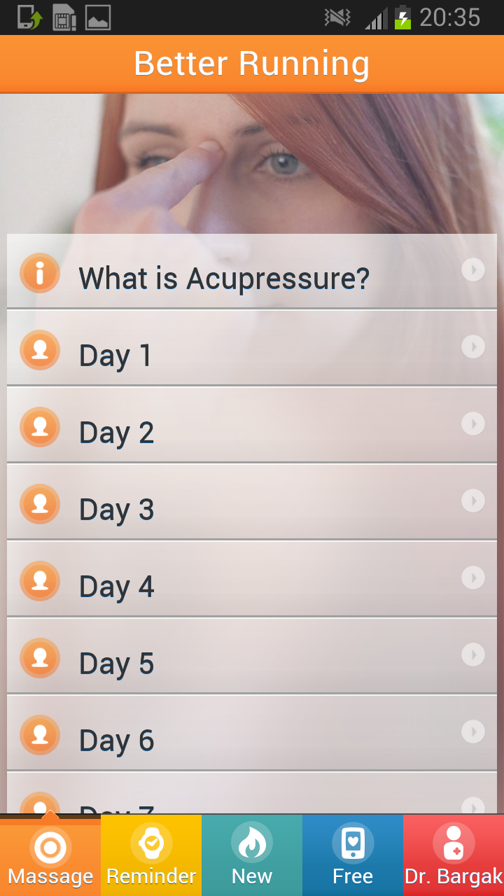 Run Faster - Free Acupressure (Package Name: com.drbargak.MarathonFree) is developed by Dr. Jakob Bargak and the latest version of Run Faster - Free Acupressure 0.5.1 was updated on October 29, 2014. Run Faster - Free Acupressure is in the category of Health & Fitness. You can check all apps from the developer of Run Faster - Free Acupressure. Currently this app is for free. This app can be downloaded on Android 2.3.4+ on APKFab or Google Play. All APK/XAPK files on APKFab.com are original and 100% safe with fast download.