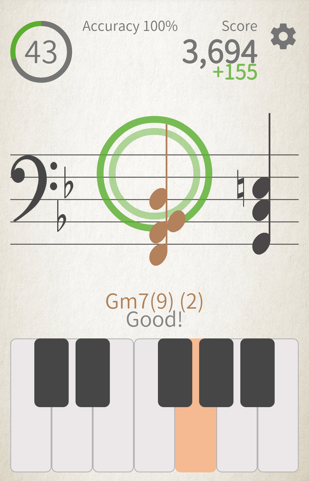 Improve skills of the music sheet by the game! Learn note position, and chords! Do you want to be able to quickly read a music score? Rush!Music will help you, and fun! It gives a good solfege! Let's master the staff score! ■Notes that appear one after the other. Trying to answer the key name within the time limit. ■According to the beat! High scores if the correct answers in a row! ■Questions range is different. The most simple, it is possible to learn a single note. Depending on the configuration, and a variety of chords, the basic chord progression will be questions. ■By Electric Piano and other, the notes will be played in a clear sound. ■In the game options, you can select a variety! ・Key (C, Db/C#, D, Eb ... All 24 key. To display the key signature in the music sheet) ・Scale (Major, Minor) ・Chord (Root, Triad, 7th, Diminished, etc ... All 13 kinds!) ・Clef (Treble, Bass, Alto, etc ...) ・Range (High, Mid, Low) ・Inversion (It will shift the notes that make up the chord. Until the third inverted) ・BPM (To adjust the speed of the game) ・Sound Type (Electric Piano, Grand Piano, Acoustic Guitar, etc ...) ・Button Type (Square, Keyboard) and more ... * Some of the items can be selected only in the full version. Furthermore, full version does not display ads. Of game options from "Buy full version", please purchase the updater!! ■Above Android4.1, this application is available.