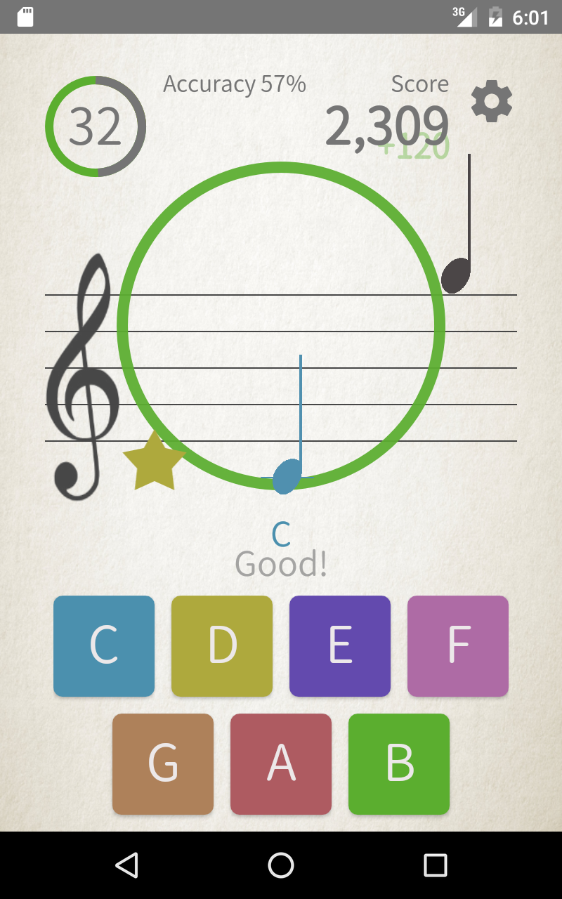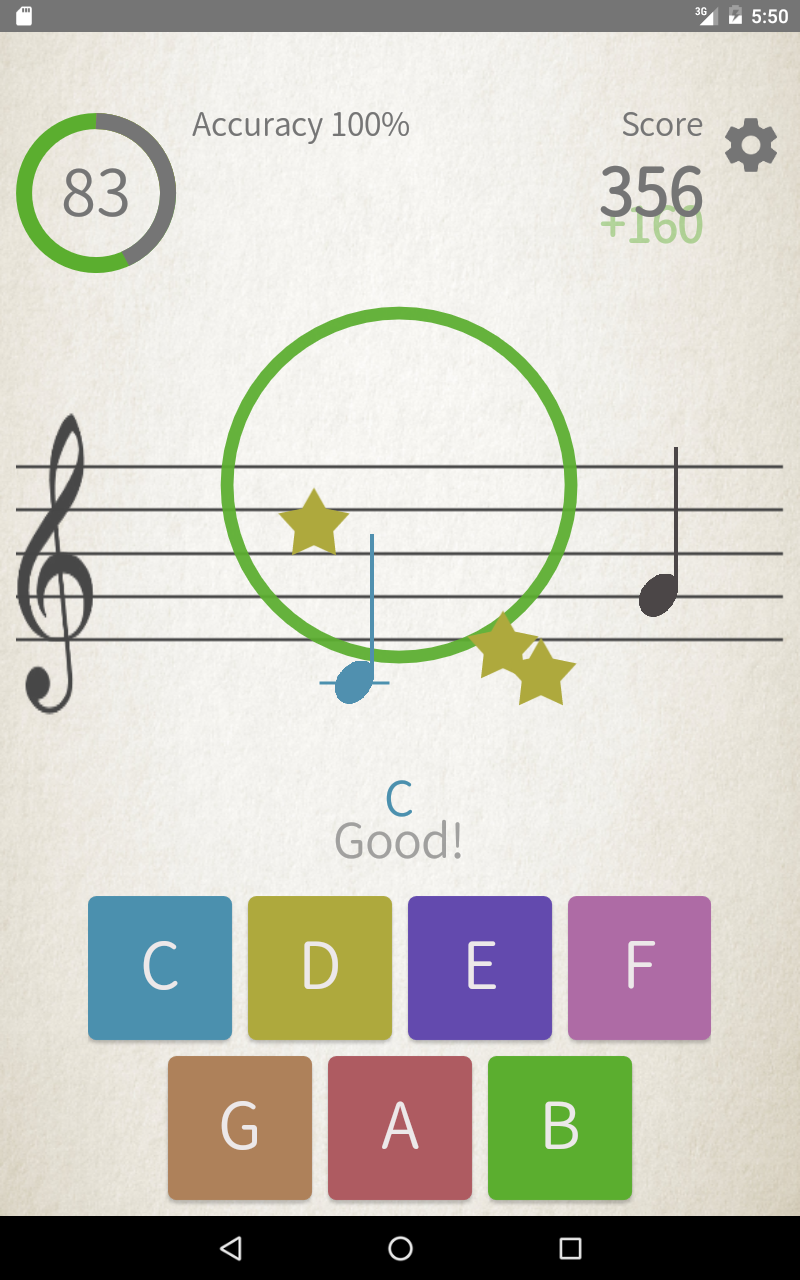 [Ver.1.6.3] ・Fixed AD content filtering. [Ver.1.6.2] ・Supported display with aspect ratio 2:1. [Ver.1.6.0] ・"Tenor Saxophone", "Cello" and "Sine Wave" were added to the Sound Type. ・Transpose by semitone is possible. For example, if it is set to "-2", "C" on music score, the answer is "Bb" which is two semitones down. * Some of the items can be selected only in the full version. [Ver.1.5.8] ・Minor fixes. [Ver.1.5.3] ・Icon fix.