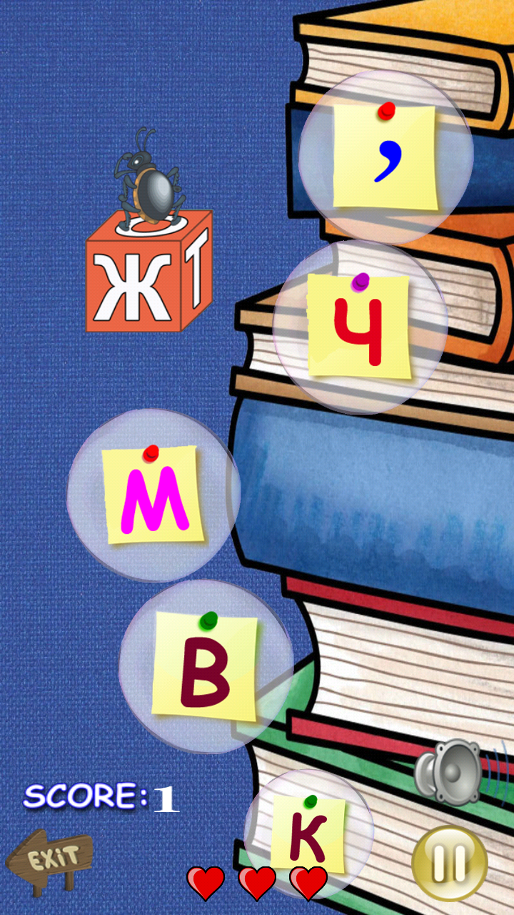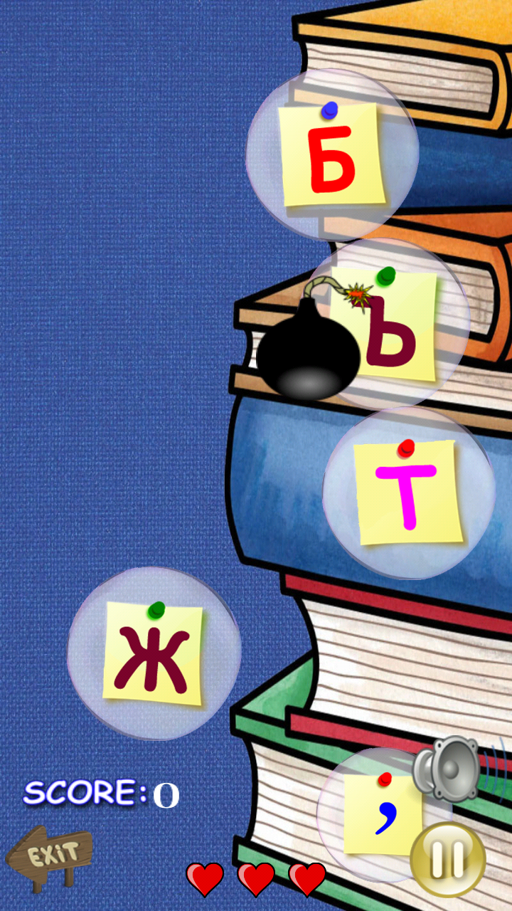 Russian alphabet in balloon Educational and logic games: learning Russian alphabet with balloons pop. By game, the voice of the letters will be heard, and the colorful drawings on the cubes will tell you which letters they are on. Now you can easily learn the Russian alphabet and russian letters. Getting on a bomb, one life is lost. The game Russian alphabet provides balloon that give life, add 50 points, take 50 points and bombs. In the game Russian alphabet, there will be bombs that take away one life. But the balloons that will give the missing life will come to the rescue. Playing the game Russian alphabet, time runs unnoticed. Download free games.
