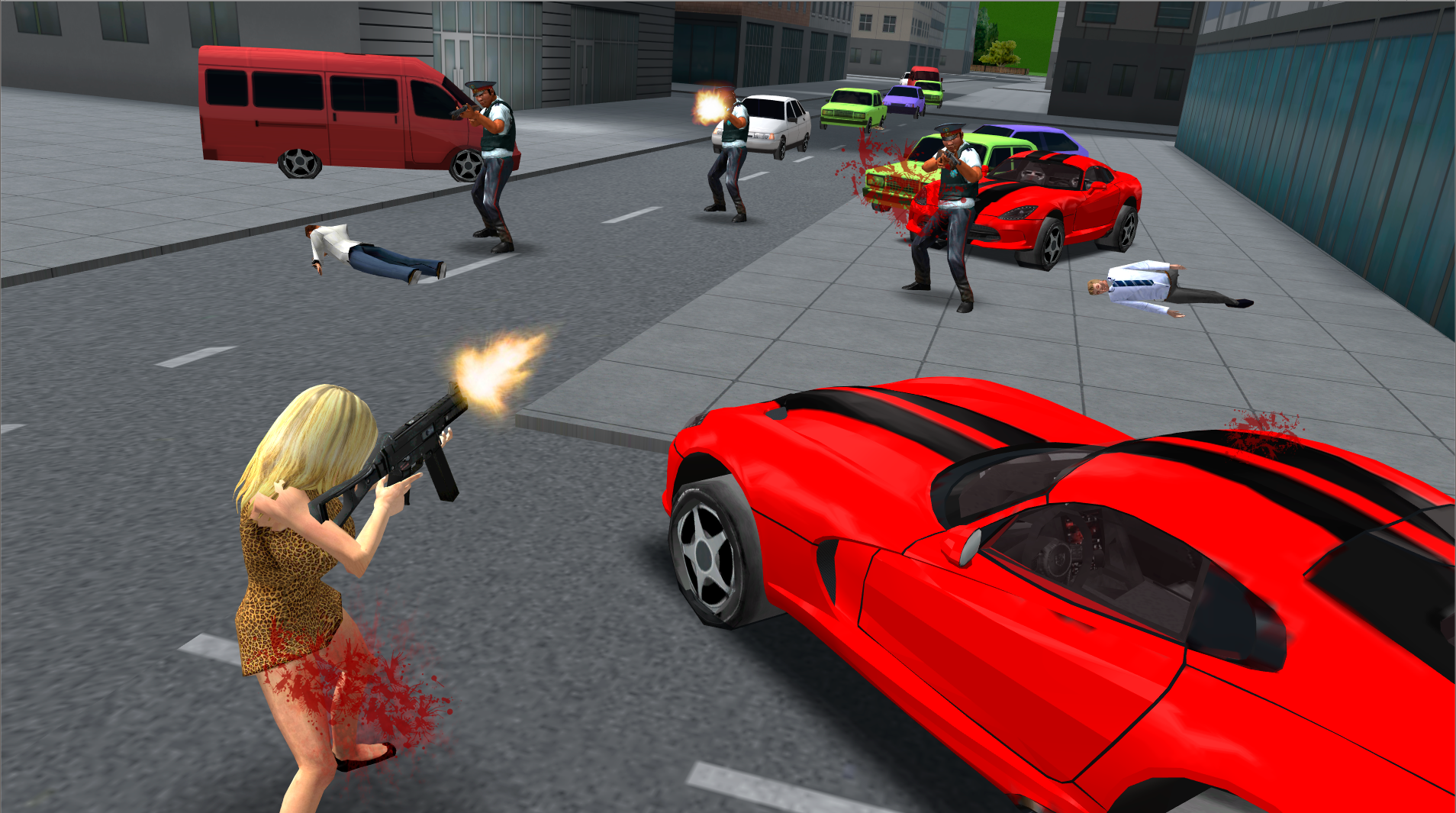 Russian Girl in Action is the best open world game in the Russian Crime City. Meet our Girl Lera ( Russian : Лера ) who is out on payroll and badly want to make money in Moscow Crime City of Russia. She is very strong and military trained girl. Help her earn money by killing people. But be careful from the Russian Police. Features -> Beautiful City of Russia -> Cop chase and Cop Combat -> Drive sports cars in city -> Unlock guns from Gun Shop