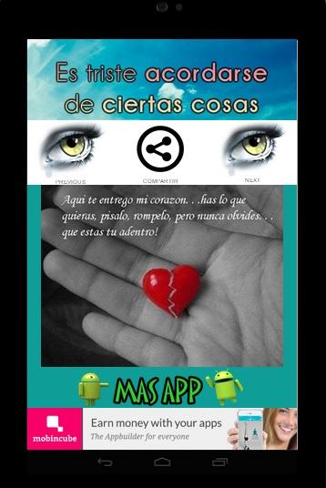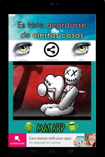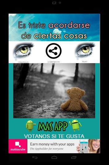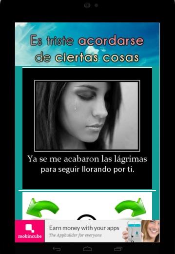 * Sad images of love, disappointment, disappointment, sadness, heartbreak and nostalgia.* romantic sad images with chidas photos and frases.* sad chidas images to relieve pain and the tristeza.* sad images to share on facebook, twitter, wasapp and gmail.* sad images with weekly updates, can leave feedback and ratings to continue improving. I hope to be of your liking...