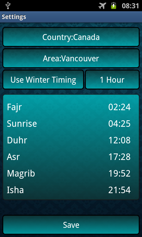 It is mandatory for every muslim to perform salat every day 5 times. So concern about salat time is mandatory. Because it is said to perform salat on time in Al-Quran. This application tends to update you the everyday salat time automatically without internet, just by local calculation. Features- -Set salat time by selecting country and city. -Juristic method, calculation method and calculation for higher latitude. -ad free.