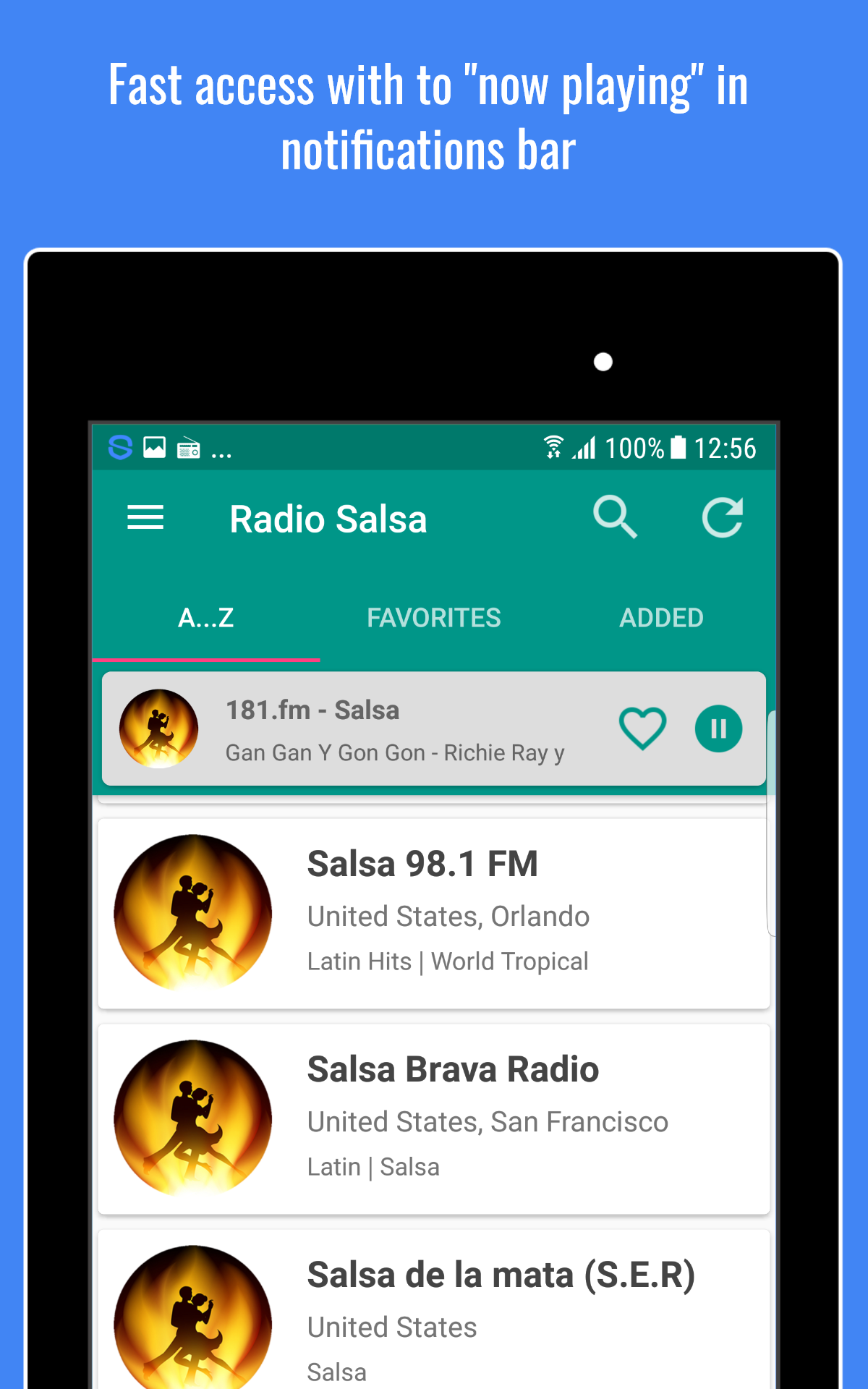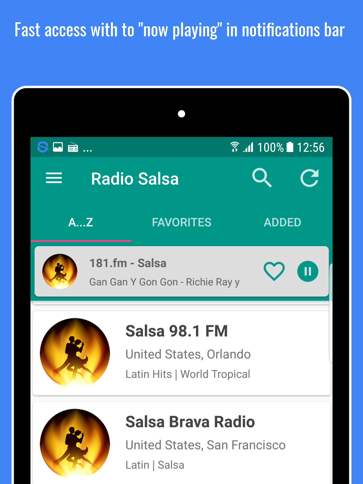 This most complete Salsa Radio App includes Radio Stations from around the world. All available live streams with Salsa Music in one single app! 📻 Salsa Music Radio: choose from the top live streams with Salsa Music from around the world ♬ Song and Artist information 💨 Fast access ♥ Set favorites 🔍 Search for a station ◉ Radios are sorted by genres 📌 Radios are sorted by location 🕐 Set a sleep timer ⏰ Set a alarm ✚ Add a live stream ↺ Refresh Playlist to always see the latest updates $ Remove Ads with low priced paid subscription ❗ Please note that not all stations are available 24/7! Some stations also do have a max. number of listeners and/or are located in regions that do not have a 100% reliable internet connection. If you see the error message "Connection could not be established" and this problem persists, please contact us. � For further information please use the FAQ Section inside the app (under Settings) or visit our homepage at http://swsisgmbh.com 📻 Tunein to these Salsa Internet Radios, included in this app: 181.fm - Salsa 1SoloPazRadio.com 809 RADIO 88.2 FM CONTROL MUSIC 94.7 Mi Radio A Salsa Dancing Activa 895 ALABANZAS YAHWEH Allzic Latino alternativa_radio alternativa879 Amor con Salsa Atlantica Soleil bachata dominicana Basto Studio Salsa Bel'Radio Guadeloupe Bel'Radio Martinique bigFM Latin Beats BikerRadio Buena Musica Radio Caliente 99 CALM RADIO - Salsa CARIBE SPORTS Radio Colombiacrossover Colombiasalsarosa Conga Bongo Radio CRBS - Salsa y Merengue Cuba HE Cumbias A Pleno CUMBIAS INMORTALES MIX RADIO Digital FM 95.8 Dj Shaggy Vzla Ecua Ambato Radio ECUASHYRI FM El Flow Salsero El Metro Salsero El Reventon Radio El Ritmo Latino Emisora Salsa y Son - Atmosfera 18 Emprender en Digital 2 Expreso Latino Crossover Fiesta FM 106.5 Flon Flon Musette Fm Tropical Shad 972 Fort Tv Musica Fuego 92 radio La Radio Tropicale La roka estacion La Salsa Del Tren Del Sabor La SUPER FM Valencia 91.8 FM La Super Maquina La Voz Colombiana La X Estereo - 100 Pura Salsa lasensaciondelasalsa Lasestereo - 100 Pura Salsa LATINA LATINO FM Loca Latino Salamanca LVM Radio Made in Zouk Mega Latina FM MEW - Salsa Mood MI GENERACION RADIO Mi Tierra FM Miami Global Radio Latino MILED Music - Salsa Mundial de Salsa PalPatio809 Radio Pamplona Colombia radio pandashowradio Postreros Tiempos Int. 93.5 FM Puerto Salsa Radio Quisqueya Radio Alborada Radio Antillas 1130AM Radio Art - Salsa RADIO CALLE LATINA Radio Caprice - Salsa Radio Corazon Tropical 102.1 FM Radio Cubana Radio Ecua Stereo HD Radio Escandalo Musical Radio Extremo Guila Oaxaca Radio Festival RADIO HABANA SON CUBA Radio Juerga Total Radio La Candela Radio Latin Style Radio Latina 104 Radio Latina 98.3 FM Radio Latinos Up Radio Los Compadres Radio Mambo Radio Merveille Togo Radio Minuto 106.1 FM Radio Norte Tenerife RADIO ONDA LATINA NJ Radio Patate Latino Radio Quisqueya Radio Regenbogen - Salsa-Party Radio Salsa4te Radio Saphir Guadeloupe Radio SOL Radio TIMBAO Radio Unica Fm Radio Yabucoa Tropical Radiobachata radiolatina.info Radiomar Plus RadioMusic Salsa 4 te RauteMusik.FM Salsa RCI LIVE RFT FLYWEB TROPIKAL RMF Cuba RTA Radio Tropikal Ambiance Rumba107 rumberaestereo.com SALSA 106 Salsa 98.1 FM Salsa Brava Radio Salsa de la mata (S.E.R) Salsa Mexico AM Estereo Salsa Radio Salsa Radio Amsterdam Salsa Underground Radio Salsa Warriors Salsa y Cultura and many more ...
