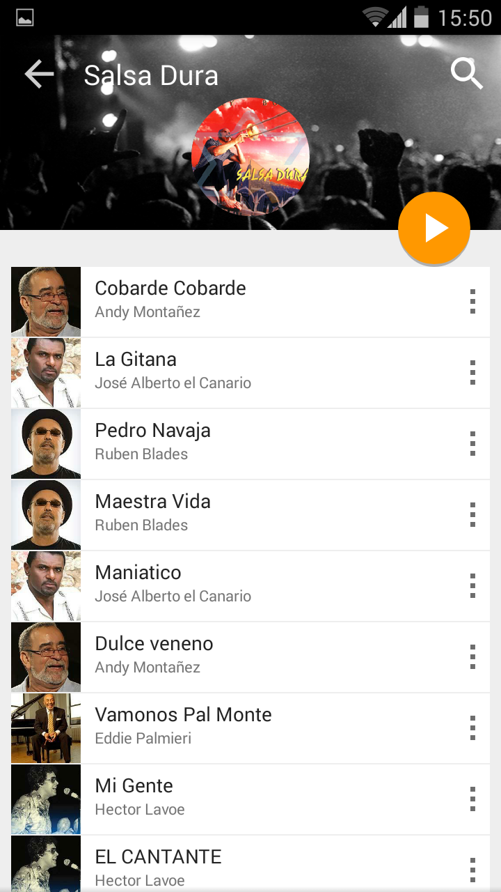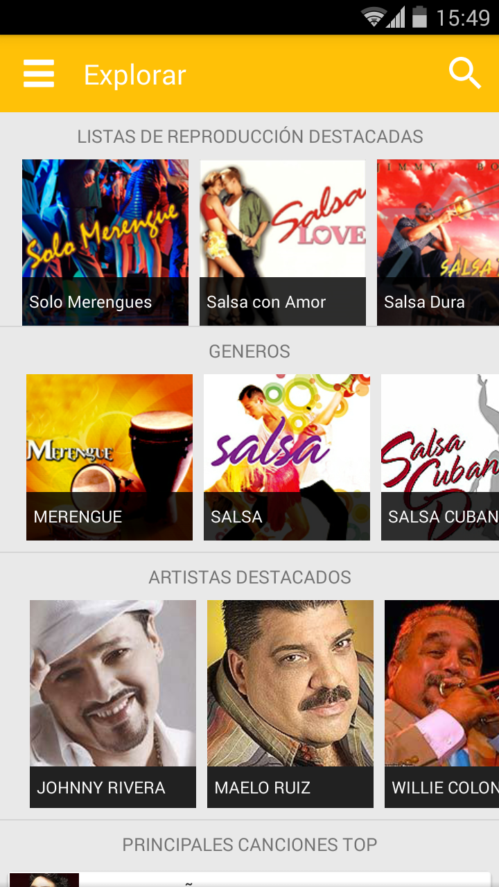 With Salsa music and enjoy listening to the best songs Salsa , Cuban Salsa , Salsa Dura , sensual salsa, timba, cubaton , guaracha , merengue . Salsa music is a totally free app , which lets you listen to the best songs Salsa . In Salsa Music you can listen to your favorite artists with complete discography, see the lyrics and add them to your custom playlist, which will be available whenever you want to hear what you're adding. Listen Free Music : Marc Anthony Music Music Maelo Ruiz Music of Joe Arroyo Music of Ray Sepulveda Gilberto Santa Rosa Music Music of Tito Nieves Music Oscar de Leon Niche Music Group Eddy Herrera music DLG Frankie Ruiz Music And many more ... ★ High Quality Music (High Quality ) . ★ Alternative Music has a modern and friendly design, easy navigation so you can find music easily . ★ Top Artists , all the best of your favorite artists. ★ Top Songs , find current issues in one place . ★ Top Albums , find the latest albums of your favorite artists. ★ Share your liking songs with friends on Facebook , Twitter, Google Plus ... ★ Hundreds of artists and thousands of songs and every day more are being increased