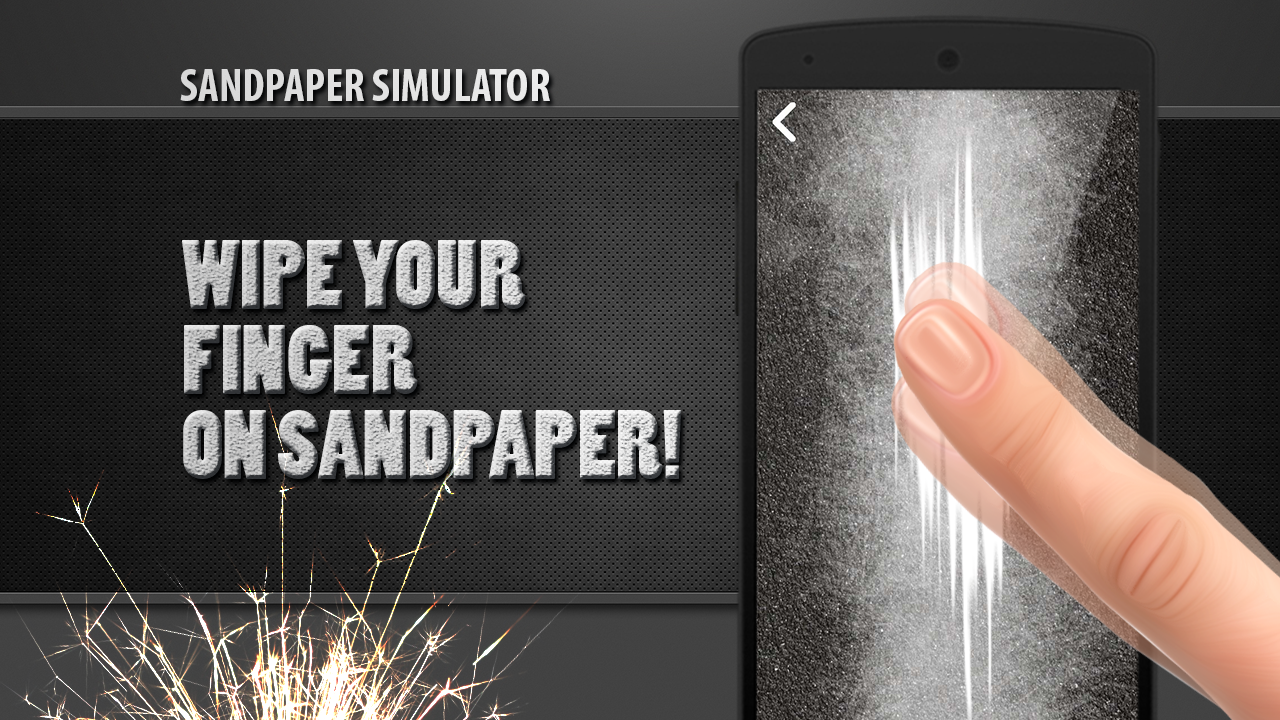 It is necessary to rub your finger on sandpaper. How many centimeters of thumb you would erased if it was a real sandpaper. And do not damage health, it is safe and at the same time fun! Modern technologies allow to try things that in real life is very dangerous. For example, find out how fast you can wipe your finger on sandpaper! Do you have enough patience and effort? And your friends? Nobody wanted to lose a finger for fun. With the app simulator sandpaper you do it safely! Three finger as long as possible to erase more than one or two fingers. Set records and show off! Especially frightening and shocking picture. If erased 3 cm - and then the picture is a finger without 3cm. Try as much as possible for more fun! Simulator sandpaper - no finger does not hurt!