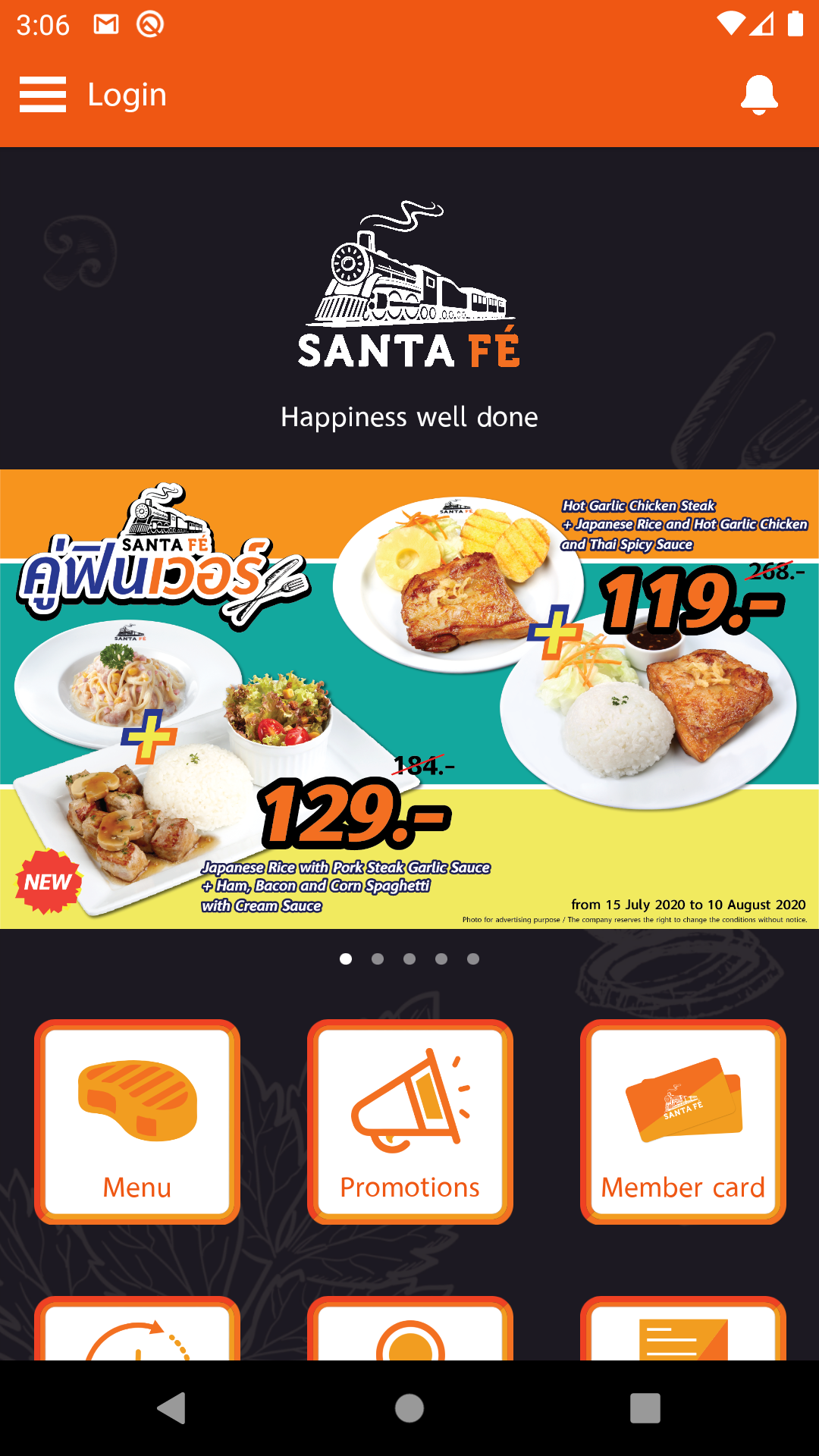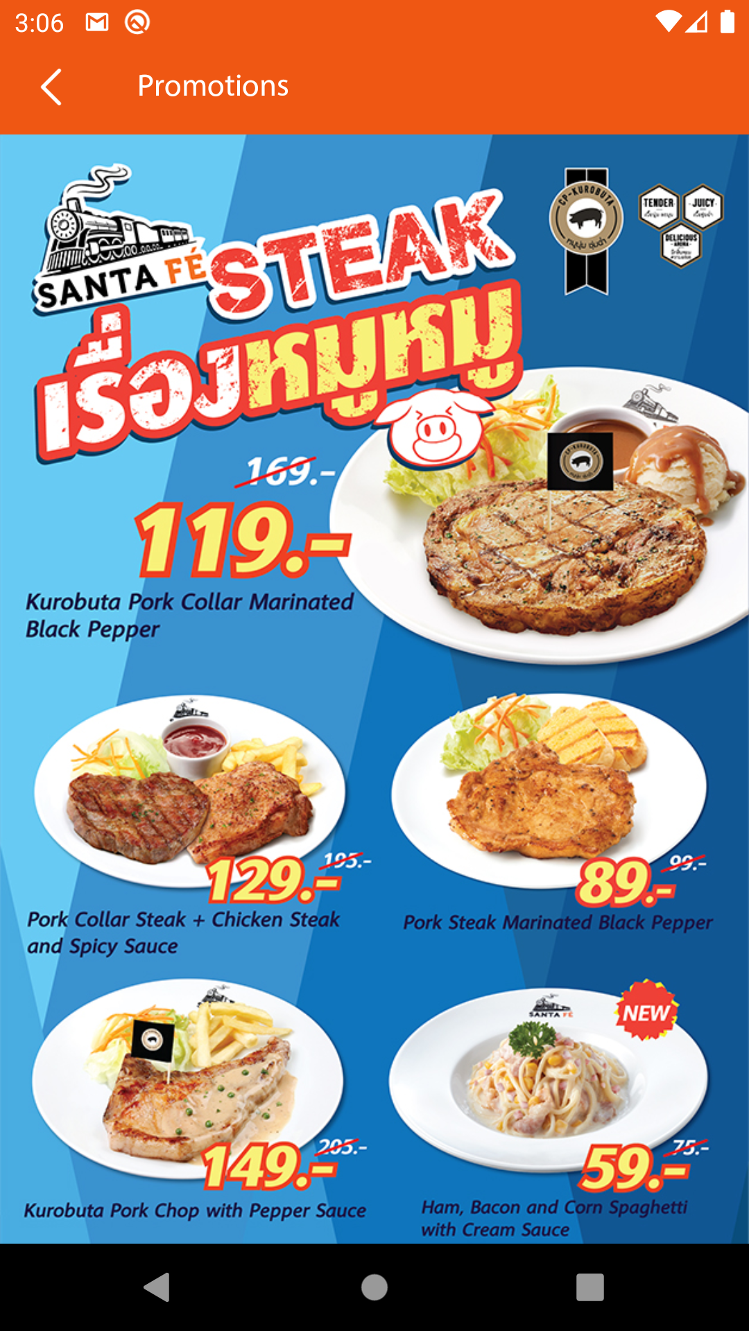 SANTA FE APPLICATION Fill your happiness and experience with supreme steak on the application with Santa Fe membership, promotions, menu, and locations that suits your lifestyle. MAIN FEATURES: E-Membership: Simple and convenient without the card. Inclusive of Membership Card system, Bell Point, Bell Point Redeem, Visiting Records, and Discount for SANTA FE E-Membership. Customer Satisfaction Survey: Share your opinions and experience directly to SANTA FE Application.
