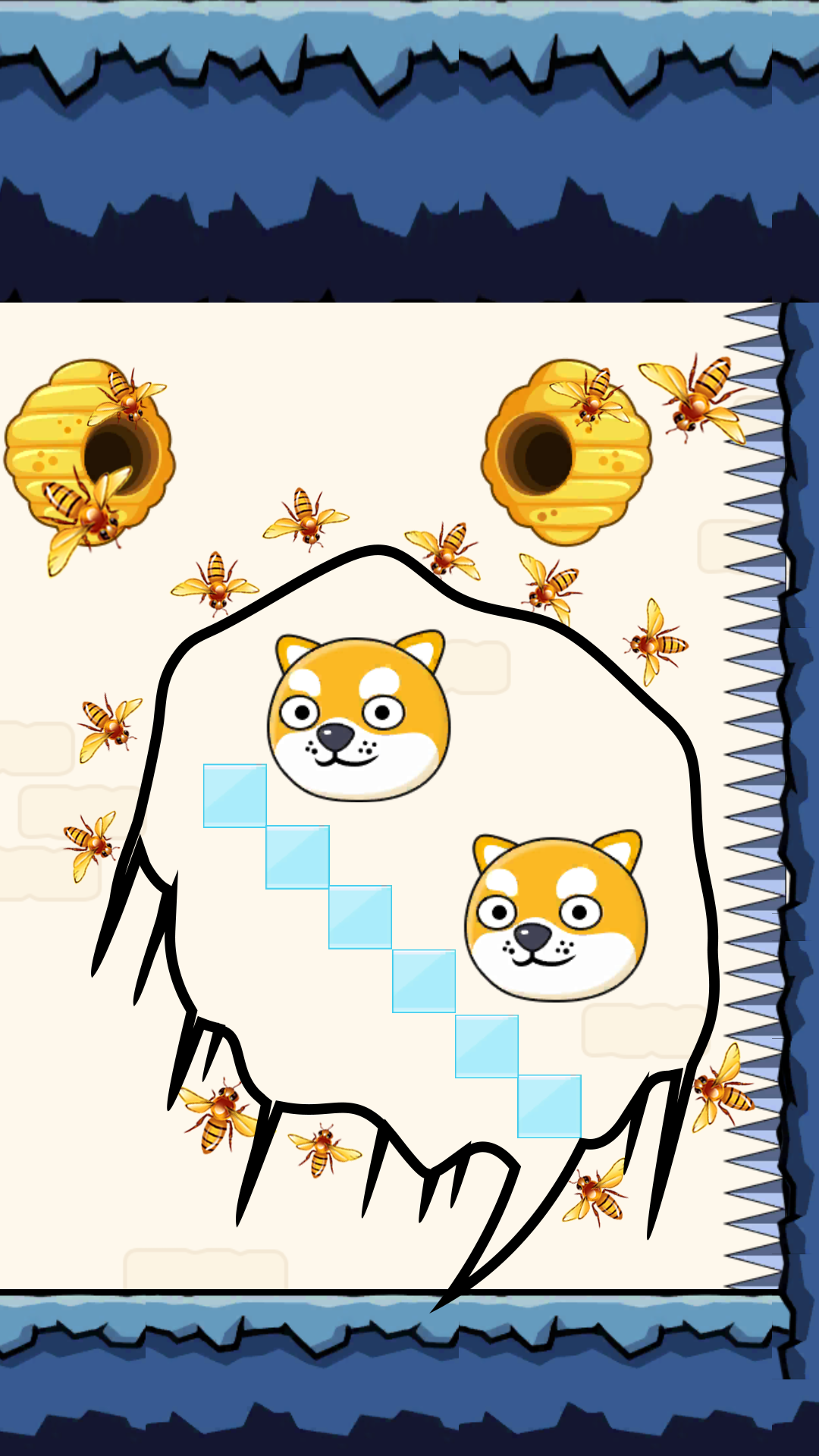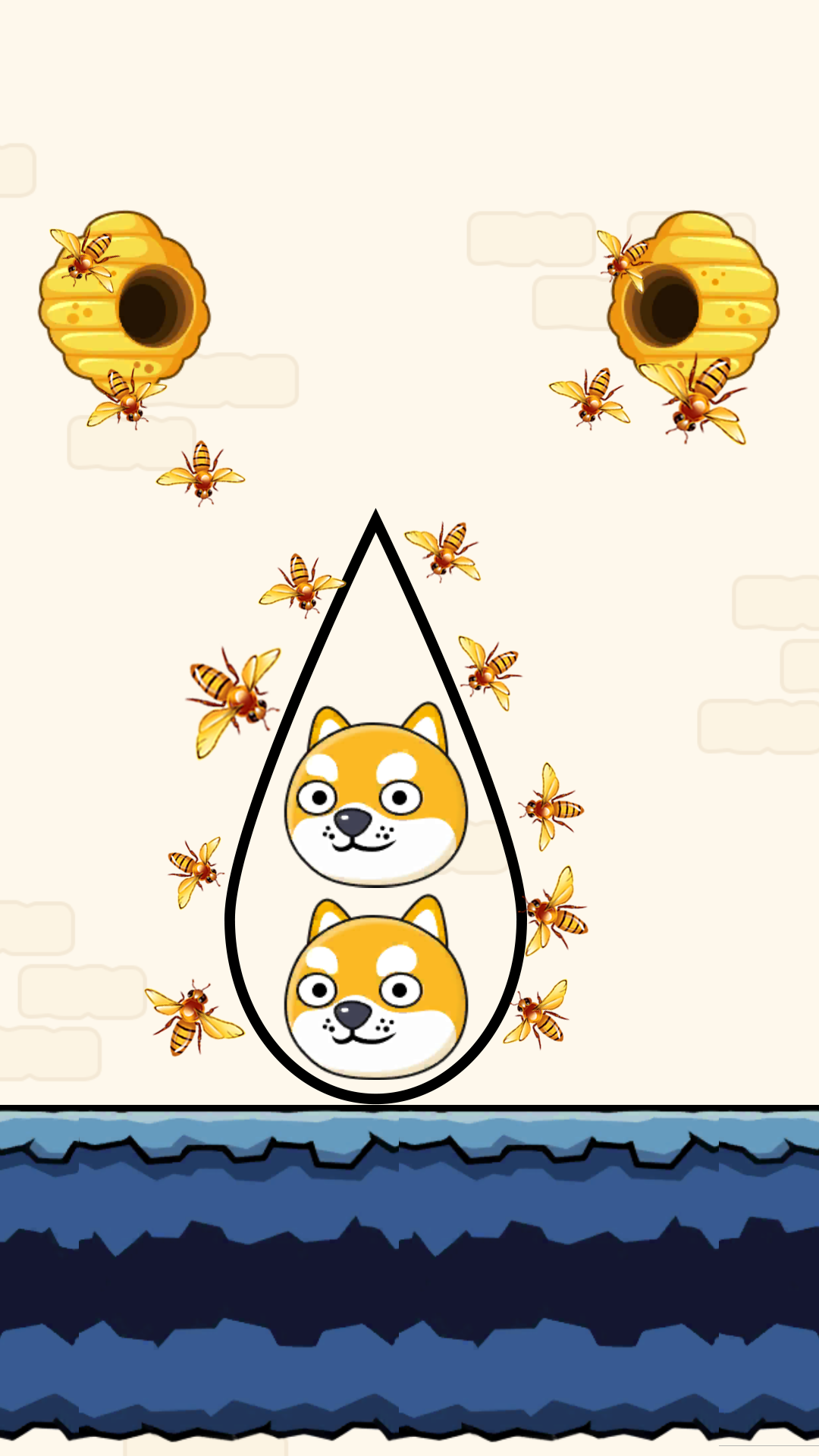 Save The Dog is a casual puzzle game. You draw lines with your fingers to create walls that protect the dog from attacks by bees in the hive. You need to protect the doggy with the painted wall for 10 seconds during the attack of the bees, hold on and you will win the game. Use your brain to save the cheems dogesh.