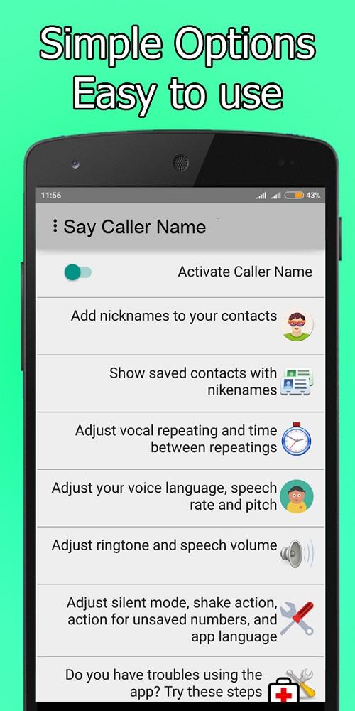 - You can add Nicknames to your contact to be (said) in the application instead of the real name which add more fun to your experience with Say Caller Name Hands Free.