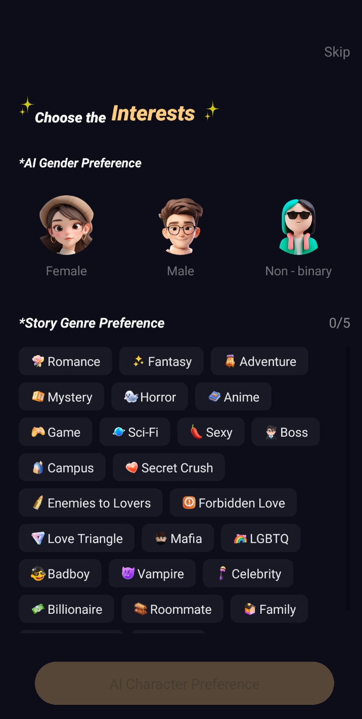 Meet over a million unique personalities—from mysterious vampires to charming idols. Each character remembers your past, learns your emotions, and evolves with every choice you make.