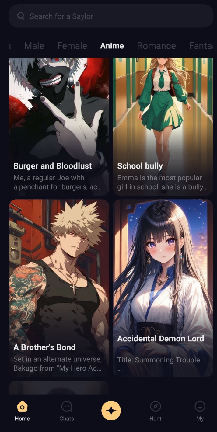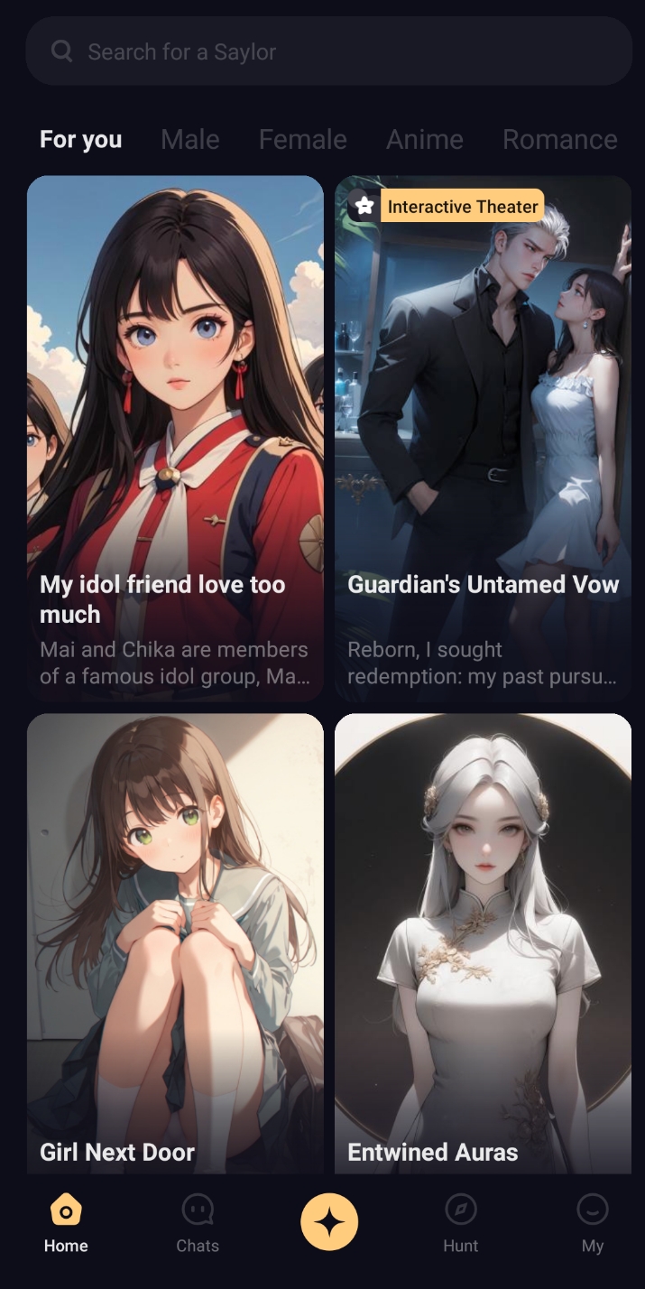 Experience the next level of interactive storytelling. Watch captivating Anime and Live-Action dramas directly in Saylo. Soon, you’ll be able to use our Drama Editor to create your own episodes, casting your favorite AI characters into the lead roles. Your stories aren't just chats anymore—they’re cinematic experiences.