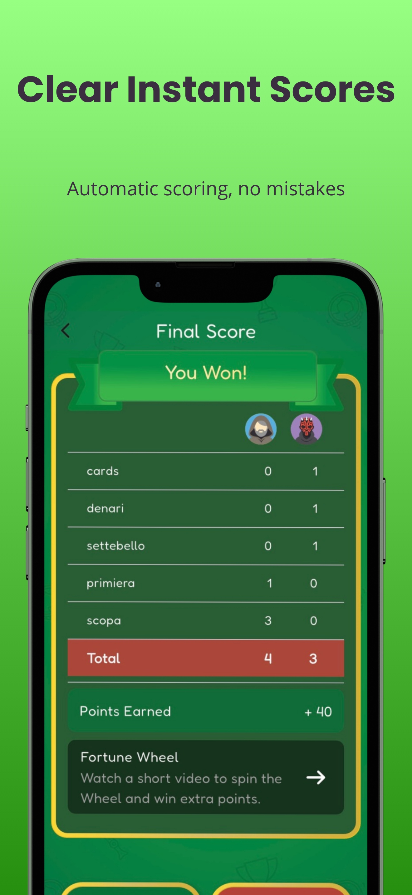 Realistic graphics and sounds: experience Scopa as if you were at home.