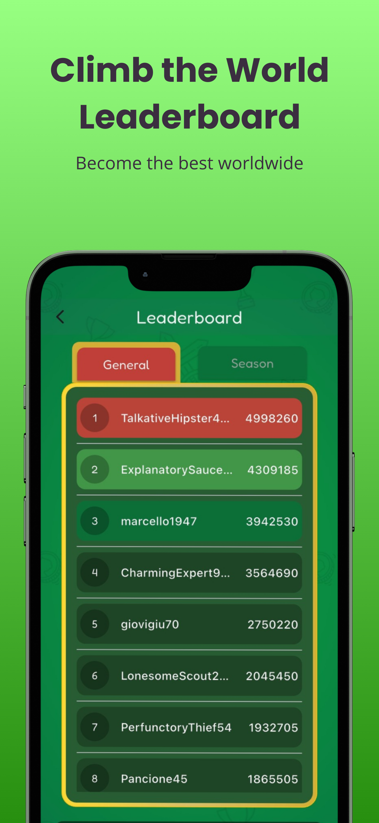 New Monthly Ranking. Every month the leaderboard updates and declares a new winner. The next monthly Scopa winner could be you.