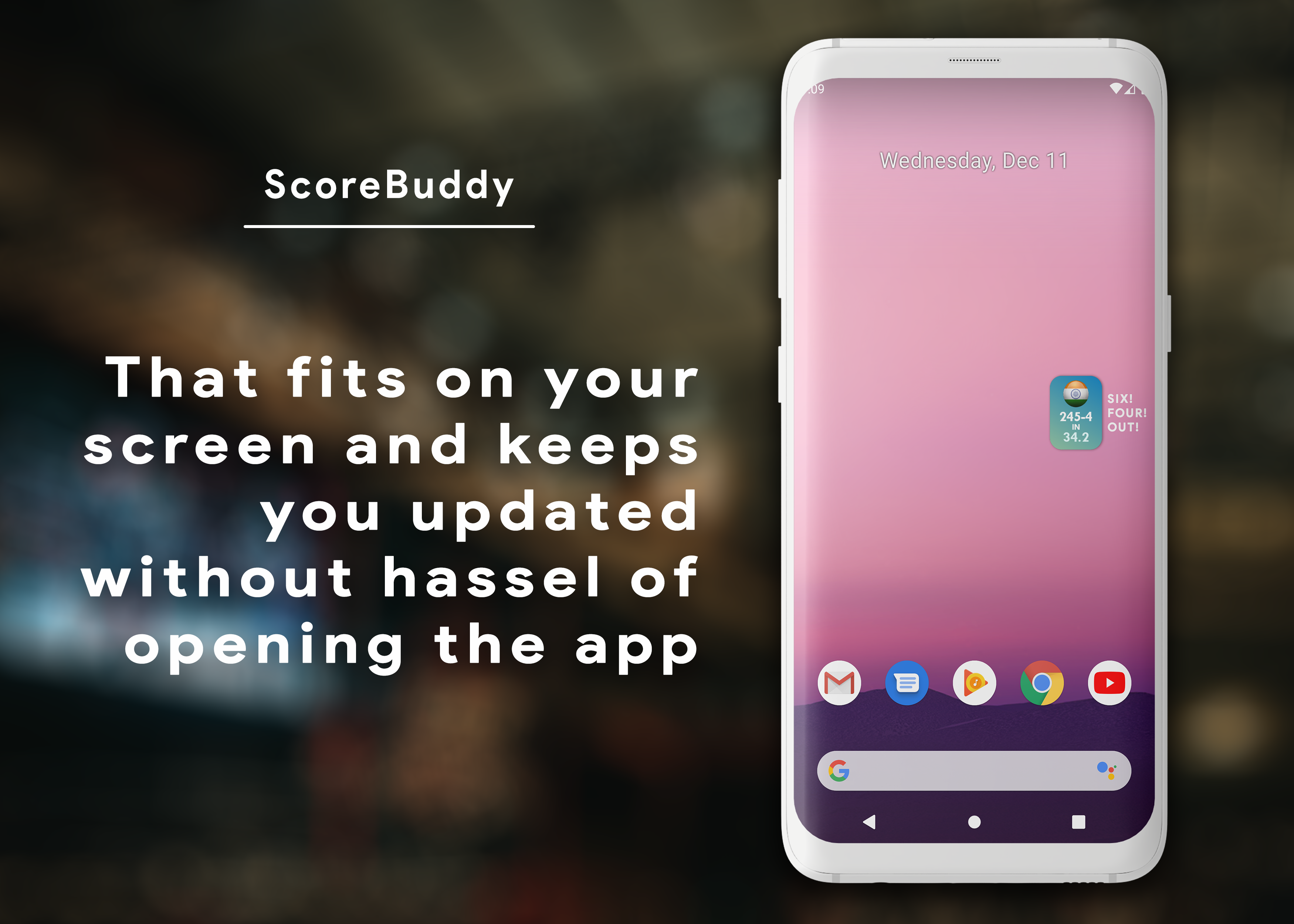Everything related to ICC, Champions Trophy, Ashes, Champions Trophy, Ashes, IPL Cricket Score, Ind vs SL, Ind vs SA. Your new destination for Free Live Cricket Scores, News and Updates. ScoreBell will be your one stop destination for everything related to cricket happening anywhere in the world. Better UI compared to other cricket apps. Trending now Sri Lanka vs India and upcoming matches What is ScoreBell - A refreshing new experience for cricket lovers and your favorite sports - Extensive coverage of worldwide cricket like ICC Trophies, International Cricket Tours, Professional Twenty20 Cricket Leagues, Domestic Cricket Tournaments etc. - Blazing Fast live score updates, You will never miss a ball again - Handpicked news and stories just for you What is different - The whole philosophy and love for cricket and all sports. ScoreBell is a must have for die hard cricket fans for a well deserved new experience. - ScoreBell believes you don’t need to be in front of a TV to enjoy live cricket and get updated with match scores and happenings. - We know you love to read about it all too so we curate news and stories from around the world and bring them to you. Top Features - Free Live Cricket score and updates. - Live ball by ball text commentary to give you the Live cricket experience - Fixtures and tournaments - Match alerts and notification- only what you need (No spam) - Customized profile modes for your needs, - In a meeting switch to silent mode, - Going out or driving a car, switch to outdoor profile and listen to live commentary of the subscribed match. - The normal profile will keep you updated with important events of the match, Fours, Sixes, Out and more - Current Matches - Upcoming Matches - Recent Match Results - Fixtures and Series details - complete details and coverage of every tournament - Stats and Records - Squads and details - Points table and scorecards - Handpicked curated News and stories - Handpicked videos you will love - Watch Highlights - Watch player profiles like Sachin Tendulkar, Virat Kohli, MS Dhoni, Steve Smith, AB De Villers and more ScoreBuddy - That fits on your screen and keeps you updated without the hassle opening the app Stay tuned for much more coming soon… Disclaimer - All the names and logos used in this application are exclusively for the identification of the respective teams, boards, associations and tournaments. Neither any board nor any team has endorsed or is associated with this application. Given credit to CricBuzz for there news feeds.