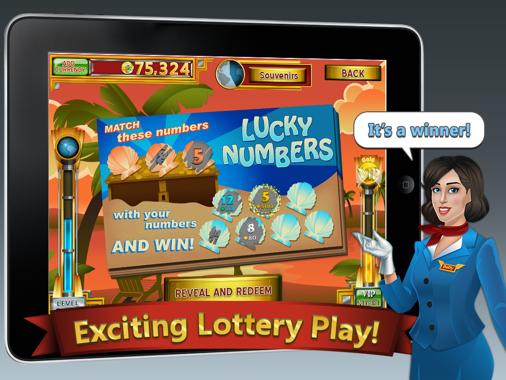 Scratch off instant lottery tickets as you visit exotic places around the world like a true jet-setter! It's your Lucky Day!