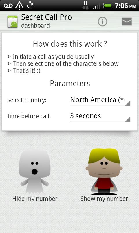 2. Then select one of the adorable characters that will appear to hide/show your caller ID