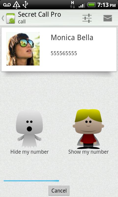 "Secret Call" allows you to initiate calls secretly, meaning hiding your Caller ID. This unique application gives you the choice to hide or show your number whenever you call someone.