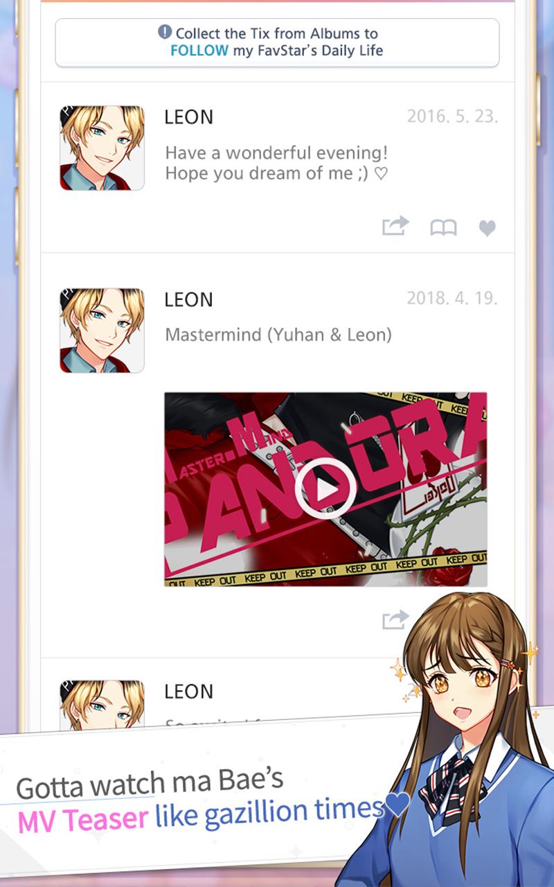 Fan Crush (Package Name: com.newday.girlssecretglobal) is developed by Day7 and the latest version of SECRET Fan Crush 1.92 was updated on March 28, 2022. SECRET Fan Crush is in the category of Simulation with the feature Romance and For Girls, etc. You can check all apps from the developer of SECRET Fan Crush and find 166 alternative apps to SECRET Fan Crush on Android. Currently this app is for free. This app can be downloaded on Android 5.1+ on APKFab or Google Play. All APK/XAPK files on APKFab.com are original and 100% safe with fast download.