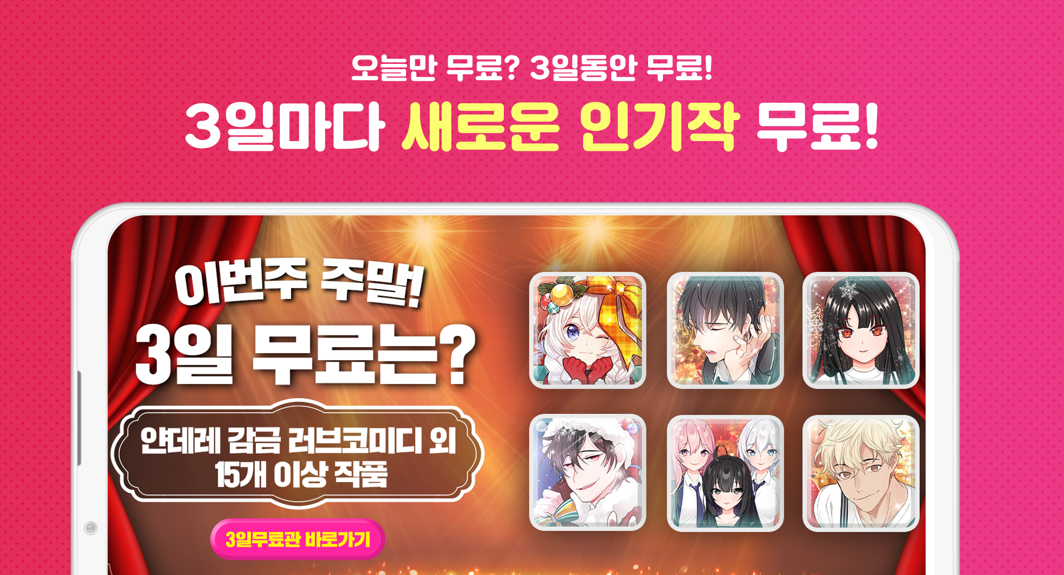 Up to the 3-day free museum where you can watch popular works for free every 3 days!