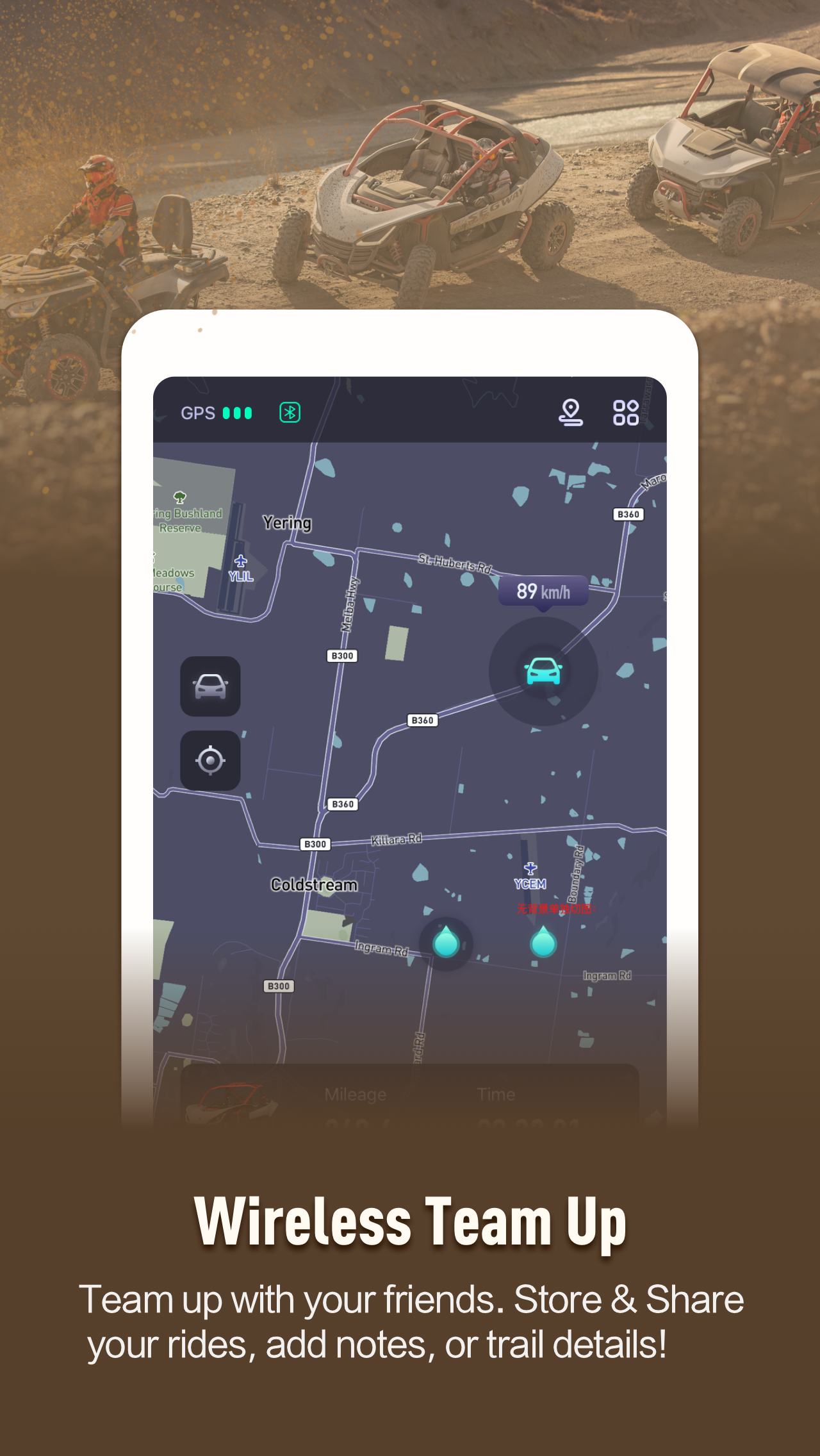 The Segway Powersport APP allows users to view vehicle conditions and use vehicle features anytime and anywhere. With this app, you can: - Check the vehicle location, and receive notifications on your phone whenever the vehicle is moved. - Power on and off the vehicle remotely, allowing your friends to ride it without a key. - Customize EPS settings via the Bluetooth. - Receive security-related reminders, protecting your vehicle. - View the vehicle's riding track, recording wonderful trips at any time. - Team up online/offline and go on a wild adventure with friends.
