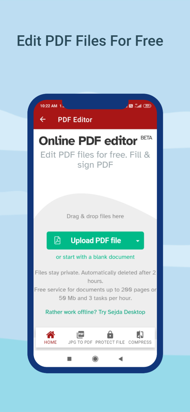 PDF Editor (Package Name: com.s_studio.PDFTool) is developed by SakoorStudio and the latest version of Sejda PDF Editor & BG Remover 1.6 was updated on October 31, 2022. Sejda PDF Editor & BG Remover is in the category of Tools. You can check all apps from the developer of Sejda PDF Editor & BG Remover. Currently this app is for free. This app can be downloaded on Android 5.0+ on APKFab or Google Play. All APK/XAPK files on APKFab.com are original and 100% safe with fast download.
