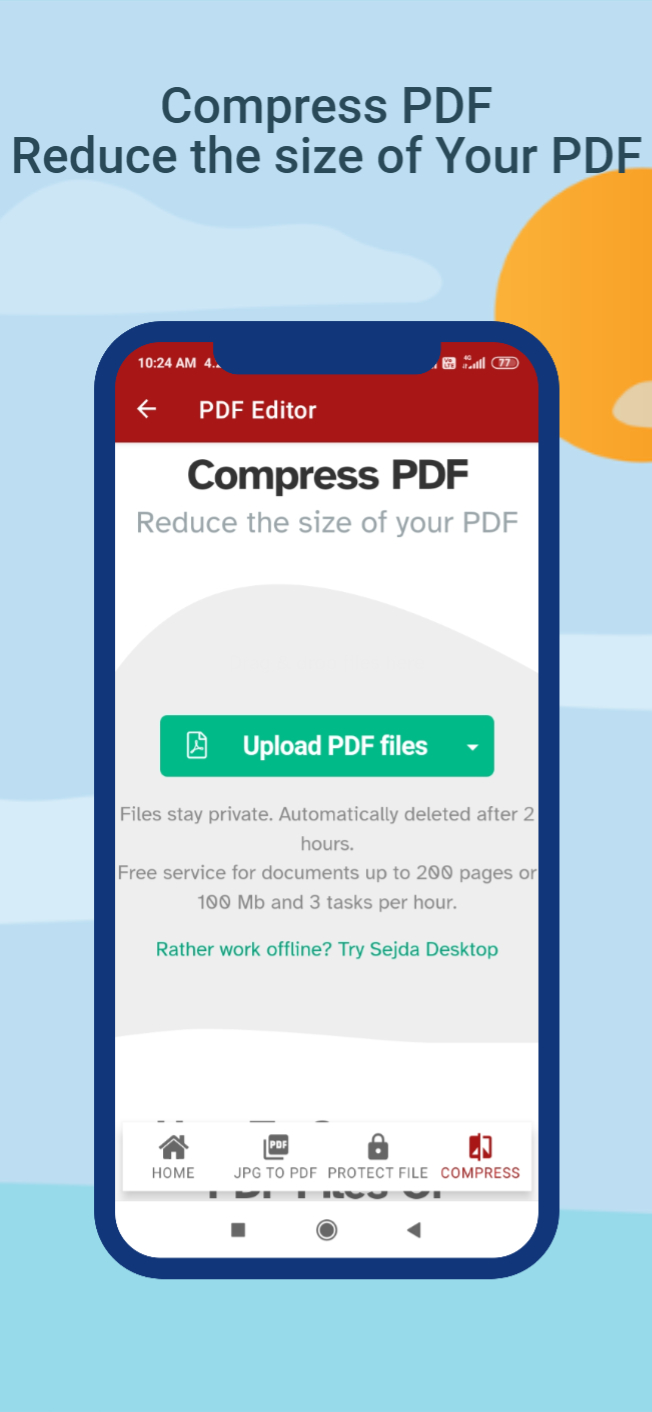 Sejda is an best PDF Reader and editor app and Background Remover also. with which you can perform any operations on a PDF document as per your needs. With this easy-to-use and productive app, Convert JPG Photos to PDF formats : --> * Convert images to PDF file. Compress PDF : --> Reduce the size of PDF files. Optimize images and resources. Edit PDF files --> Add, edit or move text in your PDF. Change the font type, size and style. Insert, reorder, move or delete pages With Sejda App, users can rotate, resize, crop, and delete pages from PDF files. Many elements may also be added to pages, including images, headers/footers, watermarks, plus more. Sejda offers password encryption settings to protect Personal documents. PDF Reader--> PDF Reader - Free PDF viewer that allows you to read, view, search, and manage PDF documents on smartphones or tablets. Free PDF Reader for Android is the best PDF reader app on Play Store. PDF viewer free& book reader is a multipurpose and versatile app that is not only a PDF reader but also a scanner for your documents. Are you looking to support low capacity reading PDF app, quickly open PDF file, support document searching, then the PDF Viewer application is the best for you? An easy-to-use interface that allows users to view all PDF files from the file manager, downloaded PDF file, or directly from the application. PDF file reader is the best choice to work with PDF files anytime, anywhere. Image Background Remover--> Remove image backgrounds Upload your photo to get a transparent background automatically and free of charge. You'll notice instantly that our background eraser handles challenging edges, like hair and other tricky conditions, exceptionally well. Remove image backgrounds on the go with remove.bg The remove.bg app offers extended functionality. You can make image backgrounds transparent, or you can add or replace backgrounds yourself. Sejda is an best PDF editor app with which you can perform any operations on a PDF document as per your needs. With this easy-to-use and productive app, one can simply edit his or her PDF document or choose from over 30 PDF tools to perform any other functionality