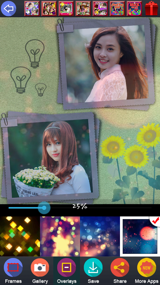 Selfie Photo Collage is a software photo editing, latest photo collage maker, very professional, total FREE 100%, easy to make photo grid. Selfie Photo Collage collage your photos to make photo grid very artistic. Selfie Photo Collage has over 100 art frames very beautiful and artistic. Only few steps very simple: select photo, rotate, collage, resize, decorate ...you had a wonderful photo. FEATURES: - FREE 100%, No SMS, No require internet to use it - Friendly interface, simple design, easy to use and collage to make photo grid - Over 100 beautiful frames, gird frames, love photo frames very beautiful - Choose the images from gallery or take picture from your camera - Move, zoom in, zoom out, pan around the image to fit the frame - Auto save photos to sdcard/Picture_SelfiePhotoCollage/ and show them in gallery - Share photo via social networks : Facebook, Instagram, Twitter, Picasa, G+, Email, SMS, Zalo, v.v… - Set photo as live wallpaper with falling stars and meteor shower effects If you are not proficient Photoshop software then application Selfie Photo Collage is a perfect choice to be able save your sweet memories with our collection of frames very art and romantic