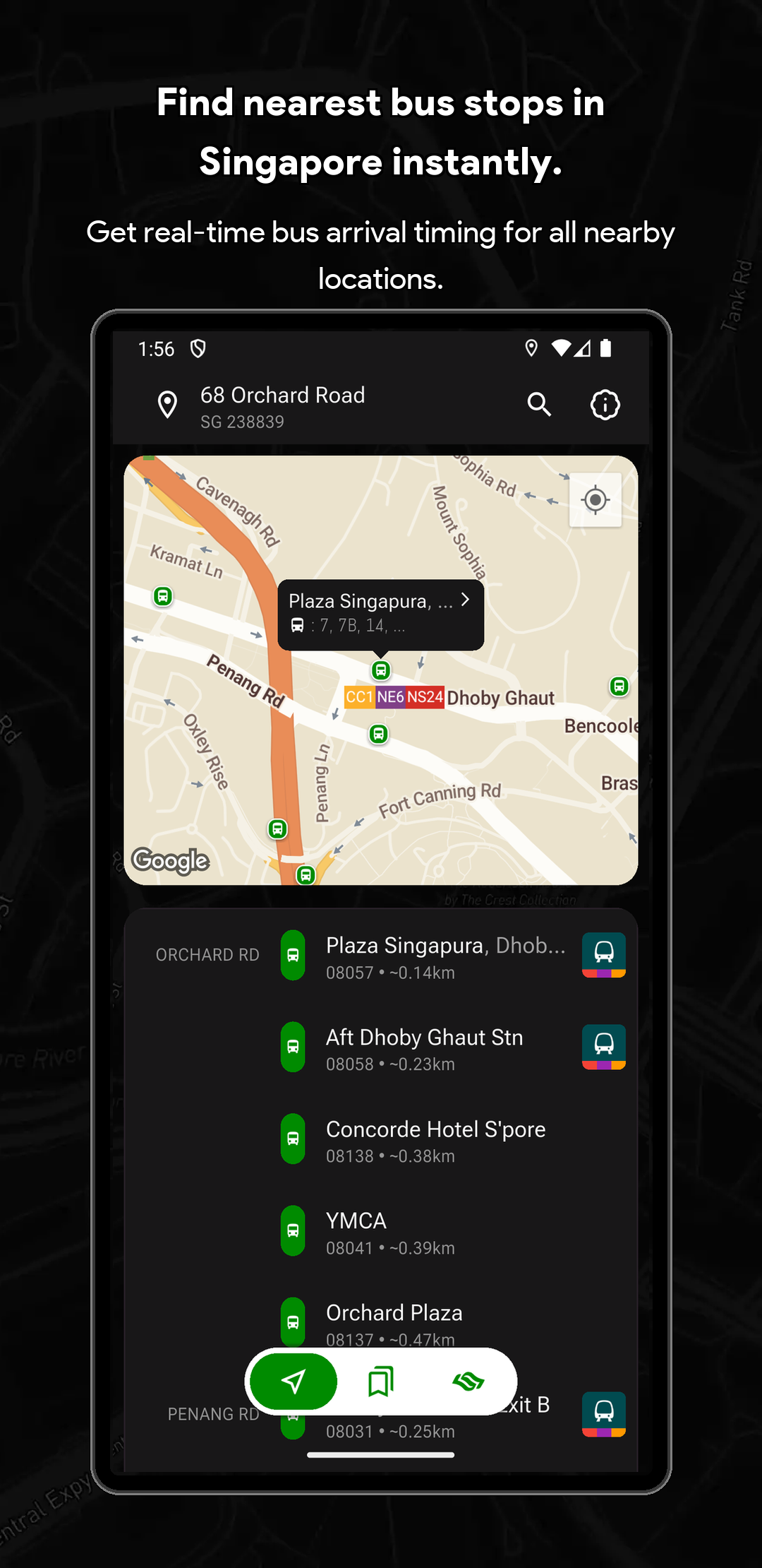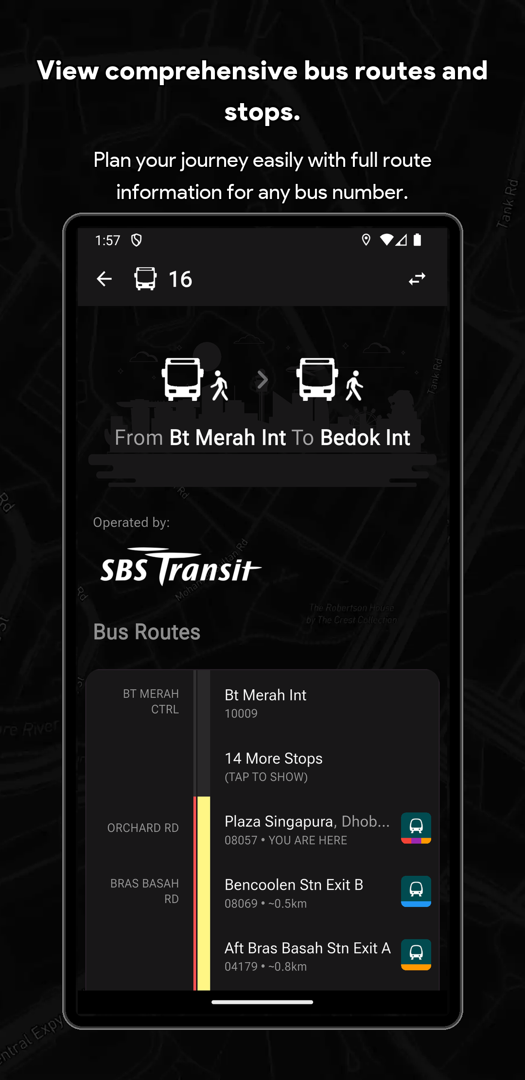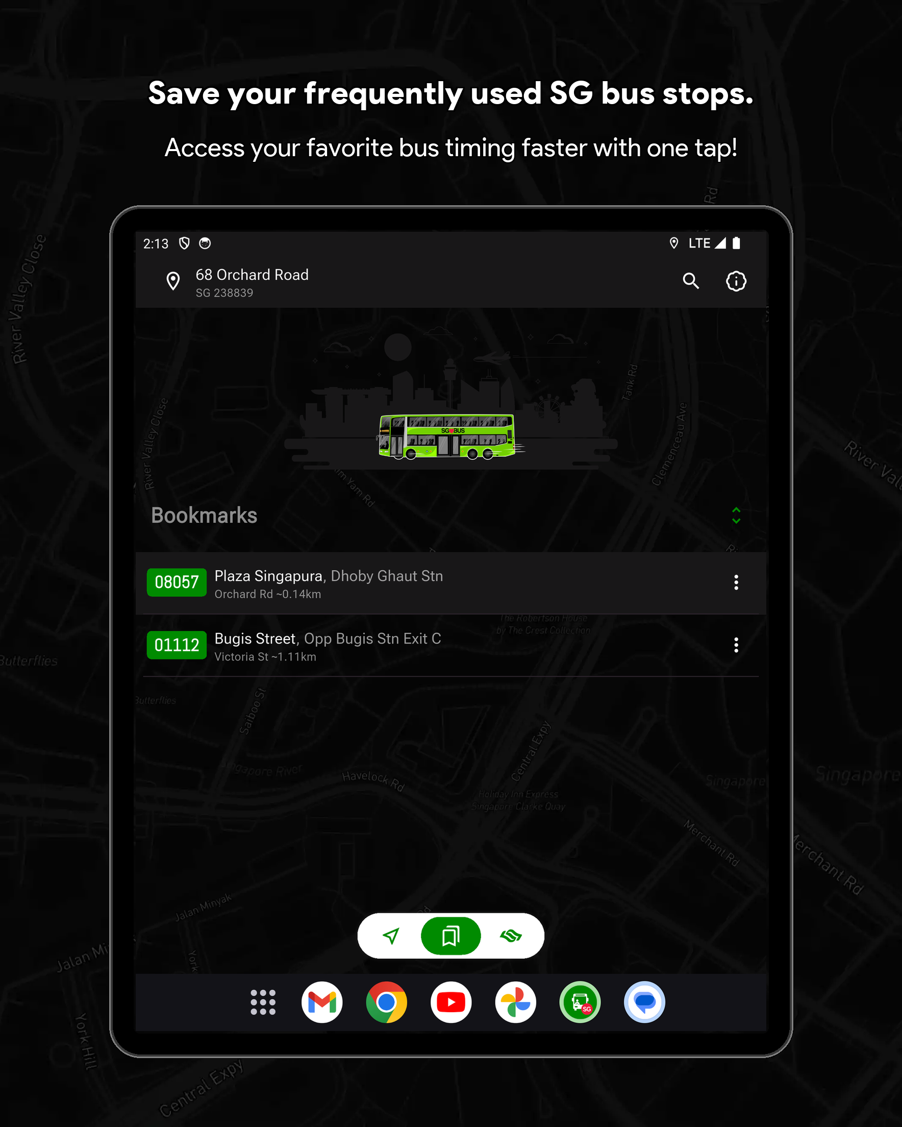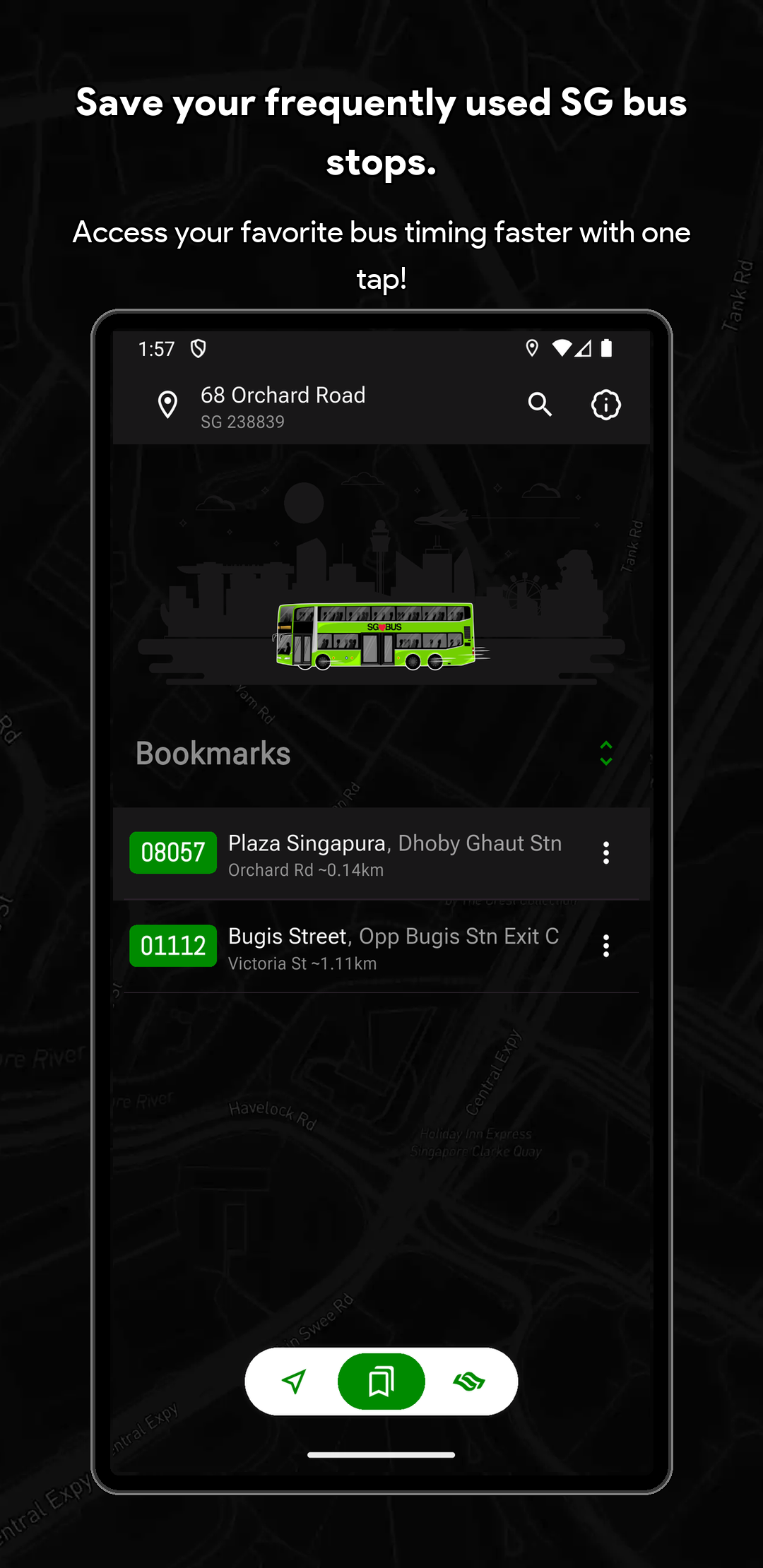 🏆 Singapore Bus Timing & Real-Time Arrival Companion (SG Bus App) Never miss a bus in Singapore again! SG Bus Arrival Time is your essential real-time public transport companion for effortlessly navigating the Singapore bus network. Get live bus timing updates, check the MRT map, and plan your commute with complete confidence. Trusted by thousands, this is the top-rated Singapore bus app you need for your daily travel. Core Features: Your Commute in Real-Time Streamline your daily travel and check bus arrival time sg quickly and efficiently. The SG Bus app ensures a smooth and hassle-free journey across the city. Whether you are searching for bus routes or checking bus sg status, the app is built to support everyone relying on LTA's reliable Singapore public transport system. 🚀 Top Features Designed for Singapore Bus Users: Real-Time SG Bus Timing: Get up-to-date bus arrival estimates for the next two buses at any stop in Singapore immediately. Locate Nearby Bus Stops: Instantly find your nearest bus stops, sorted by distance and road name for quick access to live bus timings. Essential Bus Service Info: View critical details for every bus service, including first and last bus timing, operator (SBST, SMRT, etc.), and estimated bus load. Quick Bookmarks: Save your favorite sg bus stops and services. Customize names for faster identification and check times with a single tap. MRT Map & Station Location Guide Seamlessly connect your Singapore bus journey with the train network. (Important Note: This app provides bus timing only and does not provide real-time MRT train timing.) Detailed MRT Map: Access the complete and current Singapore MRT & LRT Map (including the NSL, EWL, NEL, DTL, CCL, TEL) to easily plan intermodal travel and find connection points. MRT Station Information: Get detailed info on every MRT station, including exits, amenities, and surrounding points of interest. Bus-MRT Connectivity: View the full bus route and easily identify stops with MRT Connectivity clearly highlighted to simplify transit planning. Advanced Search & Navigation Unified & Powerful Search: Instantly find any bus stop code, bus service number, or specific bus route using a single, efficient search bar. Index to Roads: Quickly find bus services that ply specific road names, making navigation easier when you are in an unfamiliar area. Call to Action Download SG Bus now and enjoy stress-free commuting with the best singapore bus app! Get the real-time bus schedule and MRT map today! 🇸🇬 Disclaimer: This App is a personal project developed by myself and is not affiliated with SimplyGo, LTA, or any bus operators in Singapore.