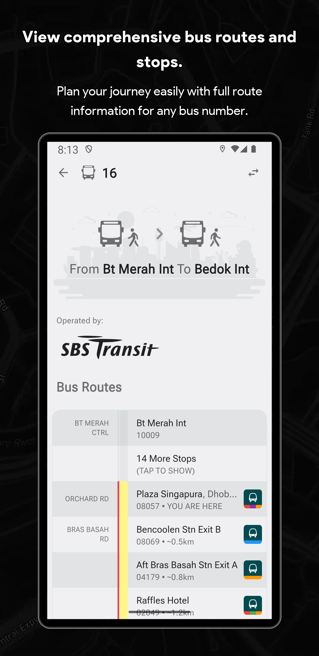 SG Bus (Package Name: com.scheung.sgbus) is developed by SG Bus App and the latest version of SG Bus+MRT 3.1.0 was updated on March 29, 2026. SG Bus+MRT is in the category of Travel & Local. You can check all apps from the developer of SG Bus+MRT. Currently this app is for free. This app can be downloaded on Android 7.0+ on APKFab or Google Play. All APK/XAPK files on APKFab.com are original and 100% safe with fast download.
