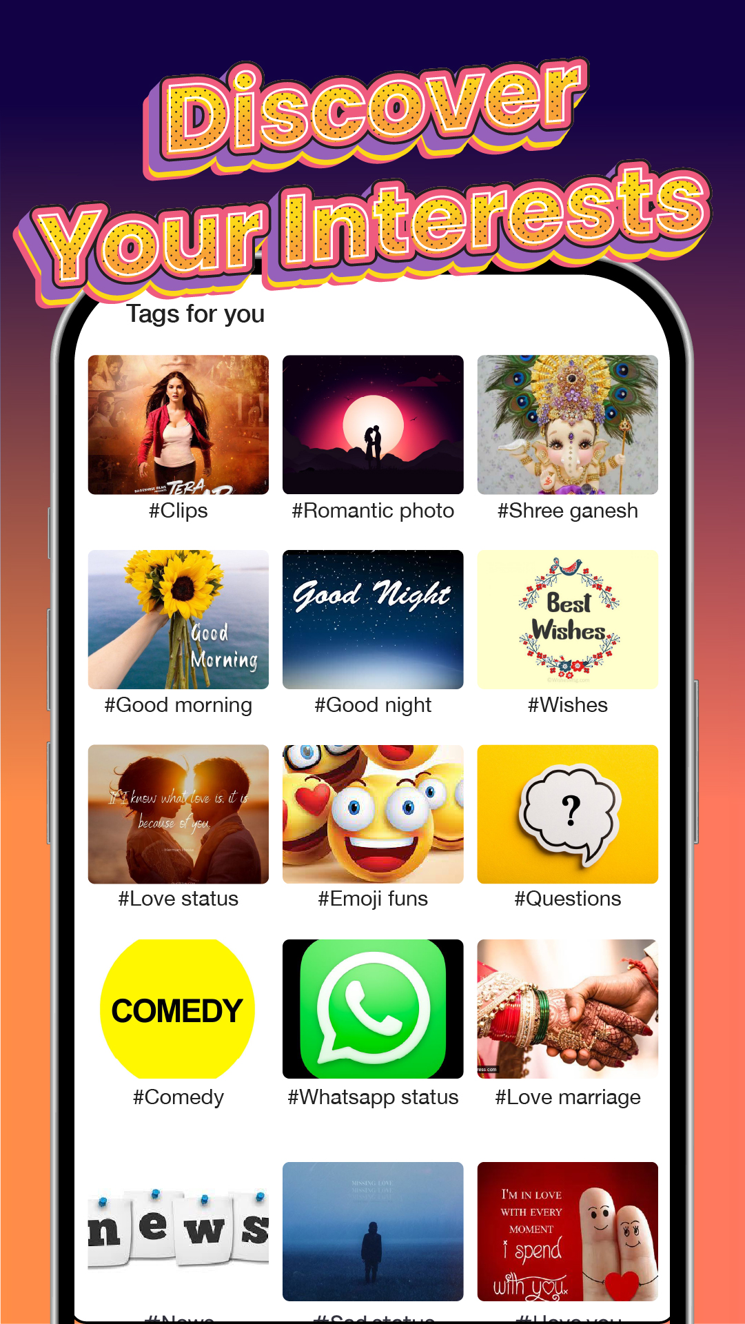 ShareChat is your one-stop destination for WhatsApp statuses, trending videos, funny jokes, viral memes, shayaris, Bollywood clips, devotional songs, love quotes, and much more—all in your preferred Indian language! With millions of users, ShareChat lets you explore and share entertaining and engaging content across 15+ regional languages, including Hindi, Tamil, Telugu, Marathi, Bengali, Gujarati, Kannada, Punjabi, Malayalam, Odia, Assamese, Bhojpuri, and more.
