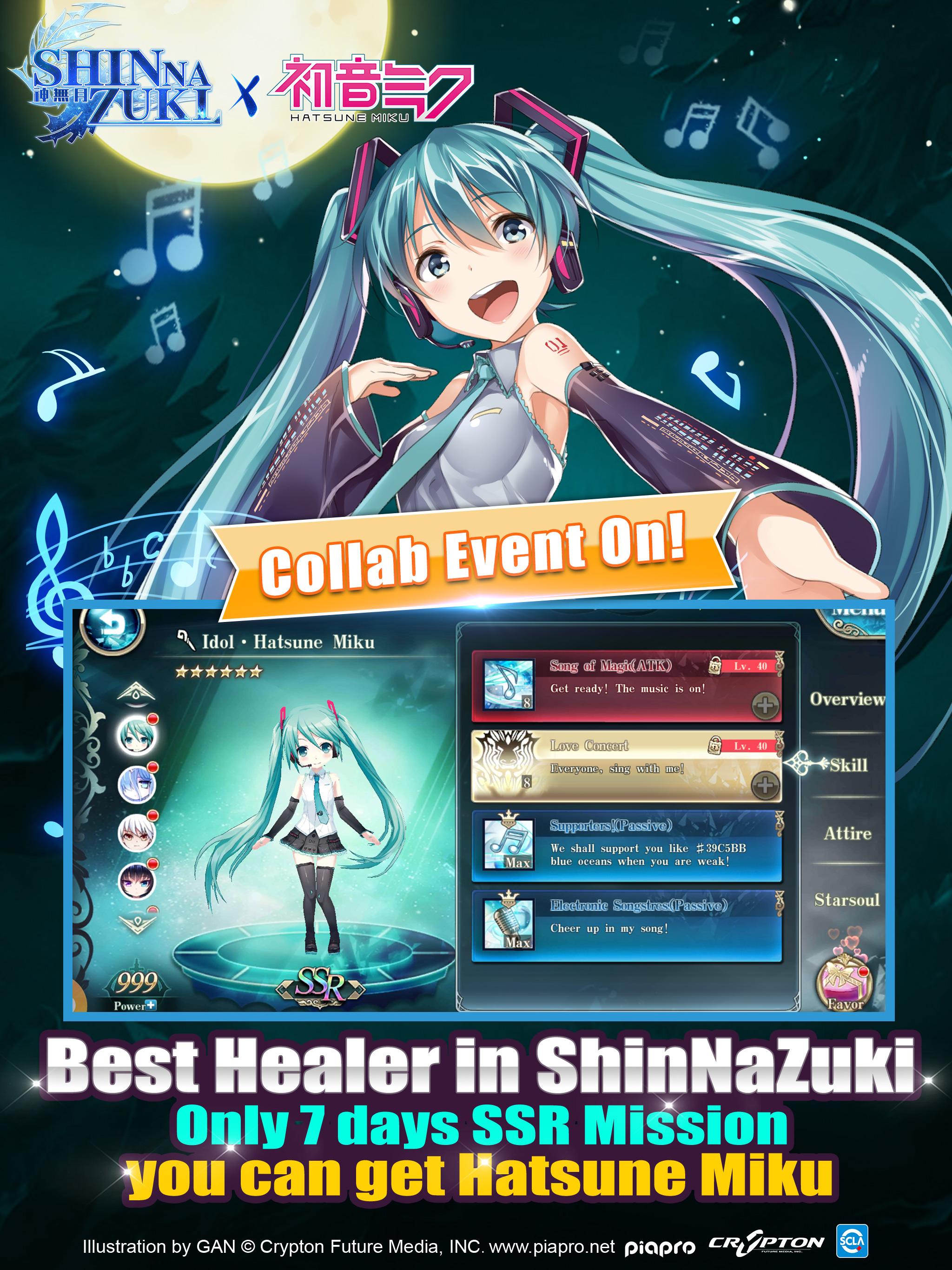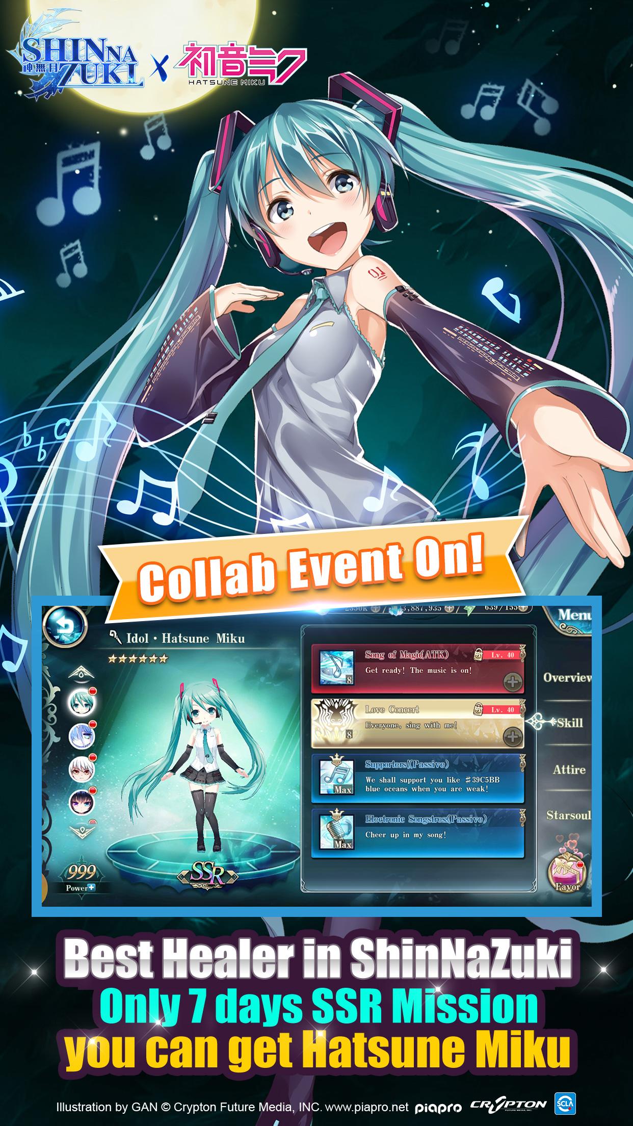 ShinNaZuki (Package Name: com.wondergame.shinand) is developed by Wonder Game Ltd and the latest version of ShinNaZuki-Hatsune Miku Collab! 1.51 was updated on March 29, 2019. ShinNaZuki-Hatsune Miku Collab! is in the category of Role Playing with the feature Card. You can check all apps from the developer of ShinNaZuki-Hatsune Miku Collab!. Currently this app is for free. This app can be downloaded on Android 4.1+ on APKFab or Google Play. All APK/XAPK files on APKFab.com are original and 100% safe with fast download.