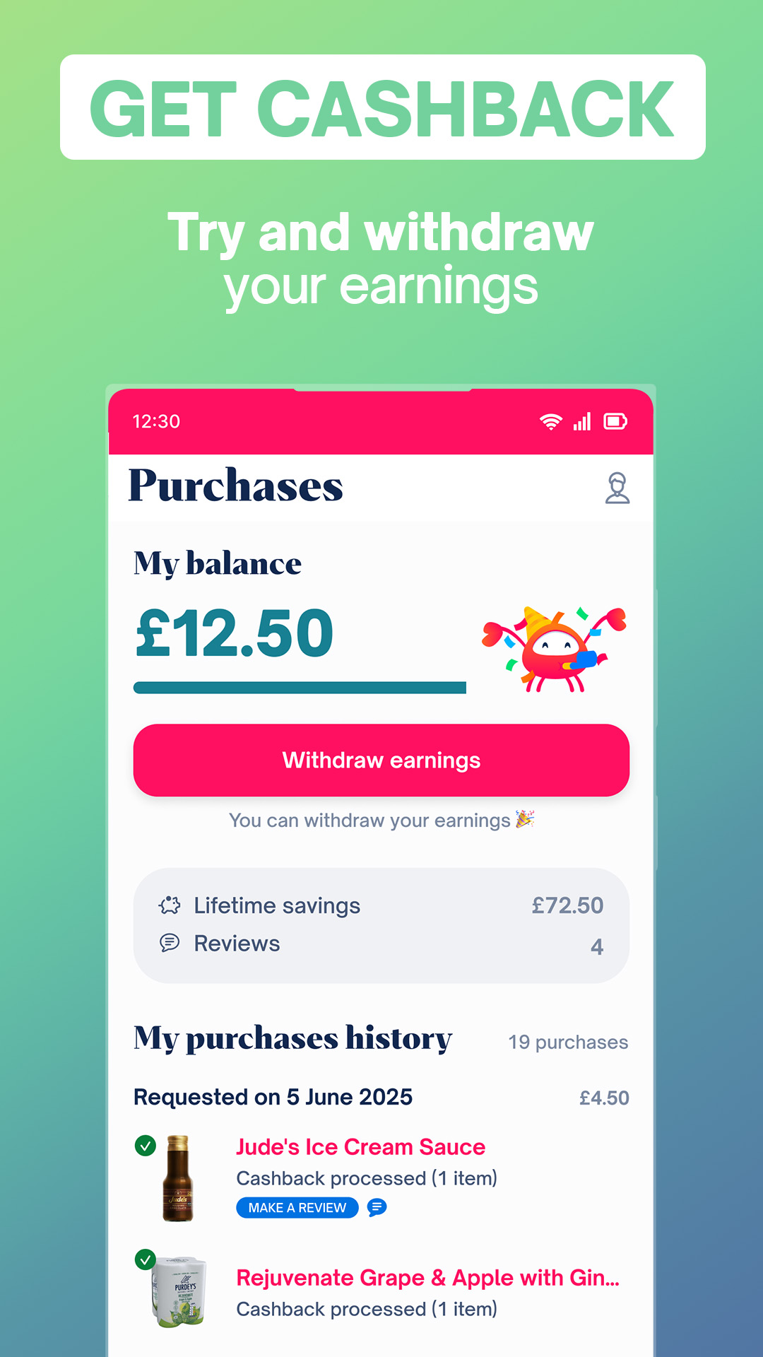 • Get your cashback – once validated, your automatic cashback is added to your Shopmium balance. Withdraw your earnings to your bank account or PayPal once your balance reaches £10.