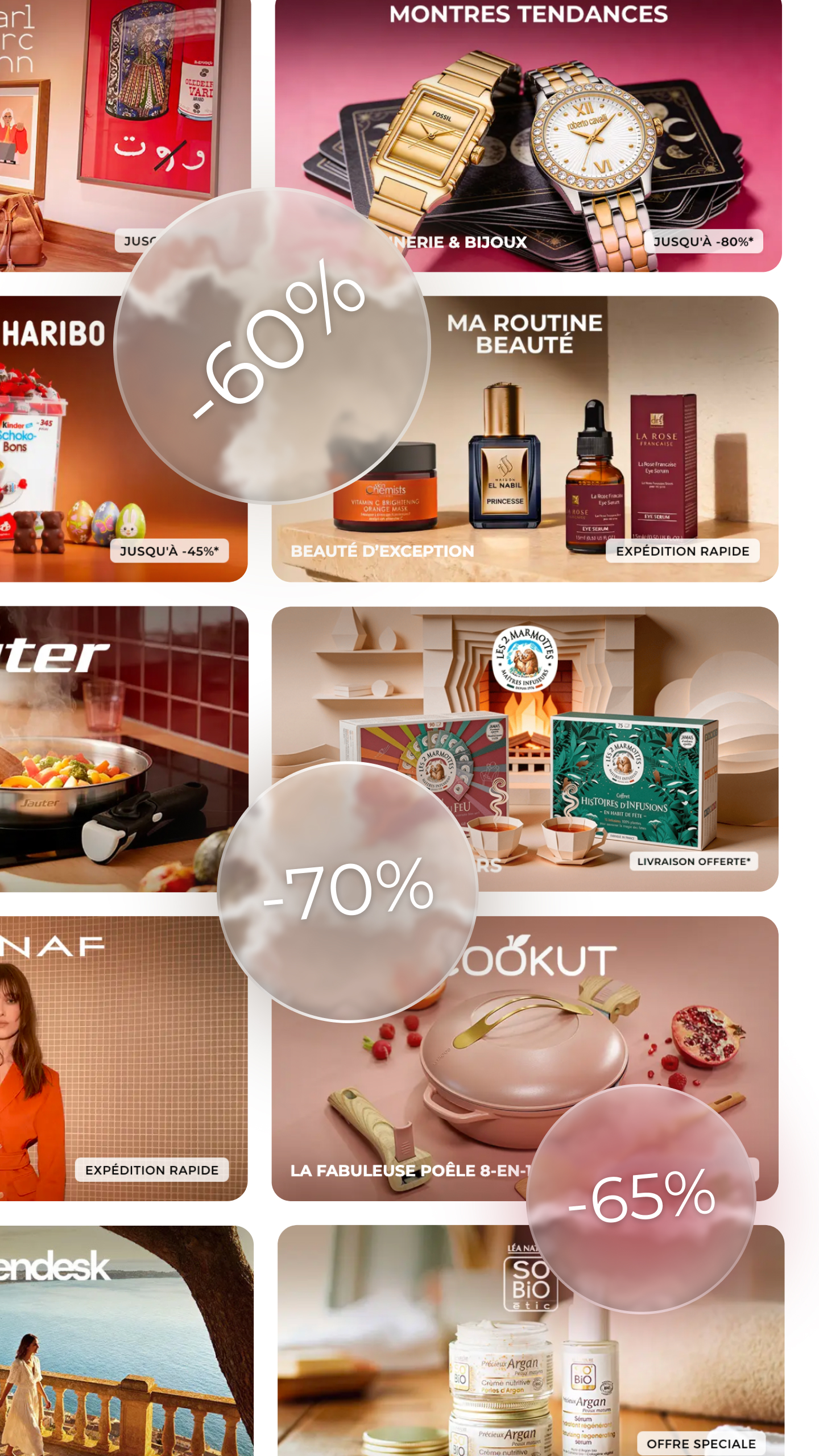 Fashion, beauty, children's, sports, tech, travel, leisure, art… Every day, take advantage of clearance sales on past collections, end-of-line items, overstock, exclusive outlet selections, and exclusive partnerships with the trendiest brands.