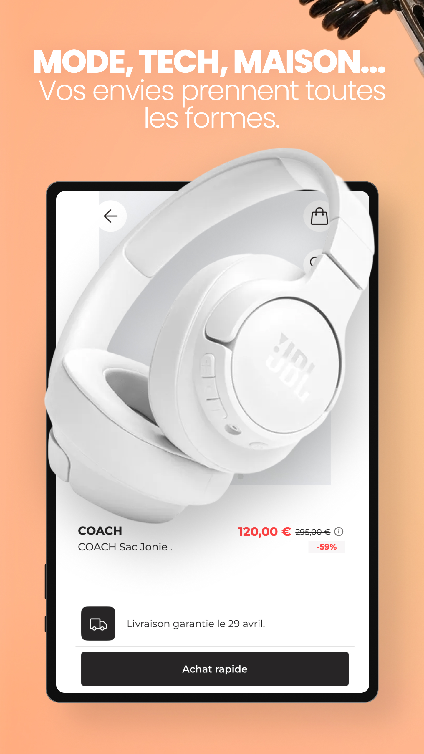 Every day, discover new brands on sale and the best deals right on your smartphone. A digital experience designed to help you find the best deals, refresh your spring/summer wardrobe, and indulge in fashion, leisure, tech, home, and beauty products.