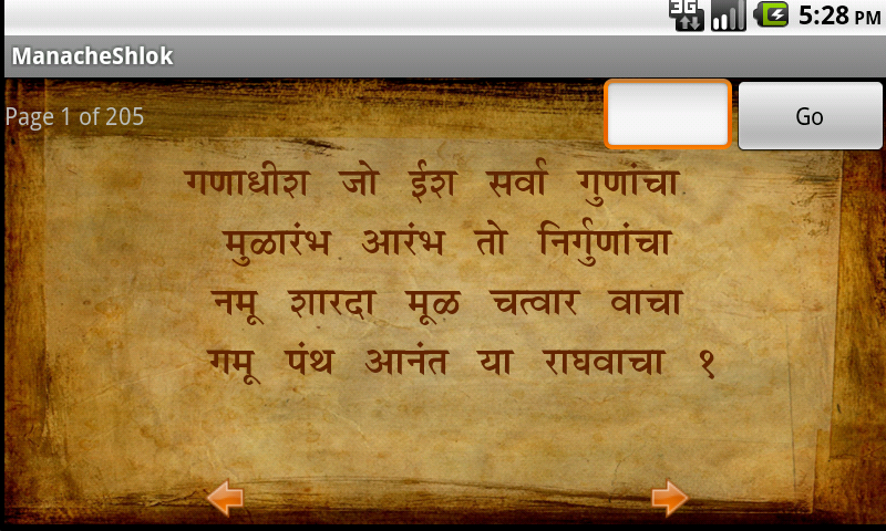 Shri Manache Shlok is an app to make Manache Shlok written by Shri Samarth Ramdas Swami available on phone and tablet. It makes them handy for people who want to recite them while on the go.
