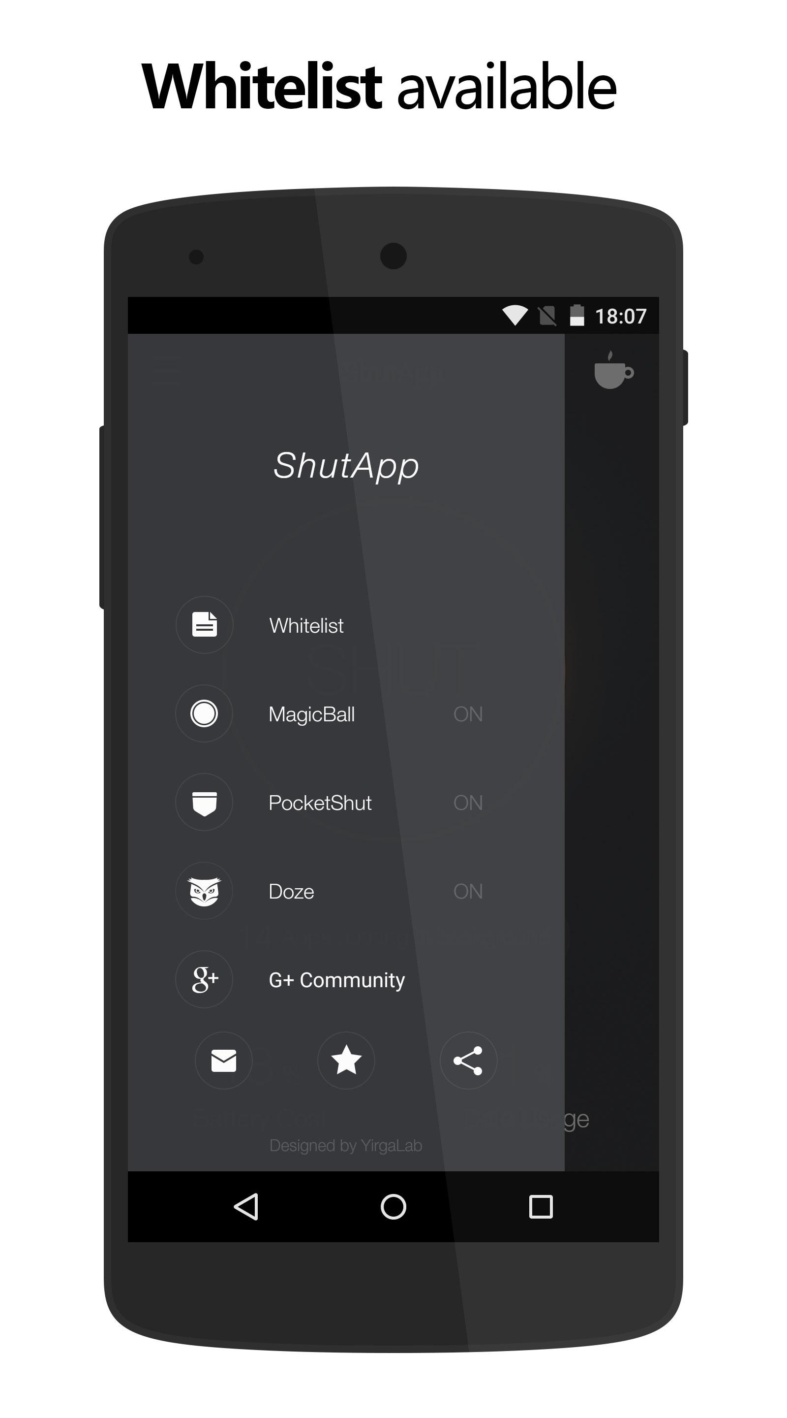 Notices1. Due to the limitation of our resources and complexity of ROM, we cannot cover all devices but we are trying our best to test on Android devices as many as possible. If ShutApp does not work properly on your device, please contact us immediately so that we can find a solution for you.