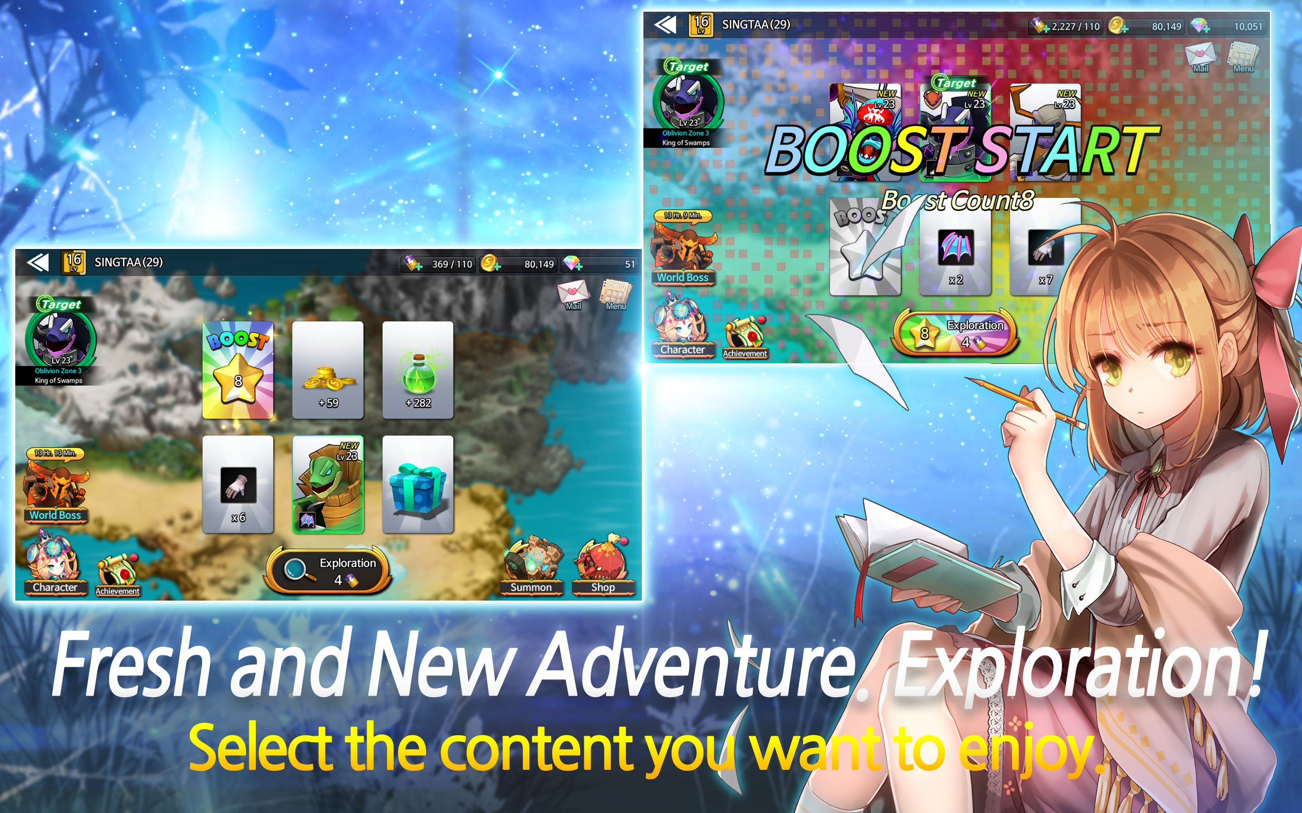 "Exploration" lets you meet various rewards, battles, and competitions.