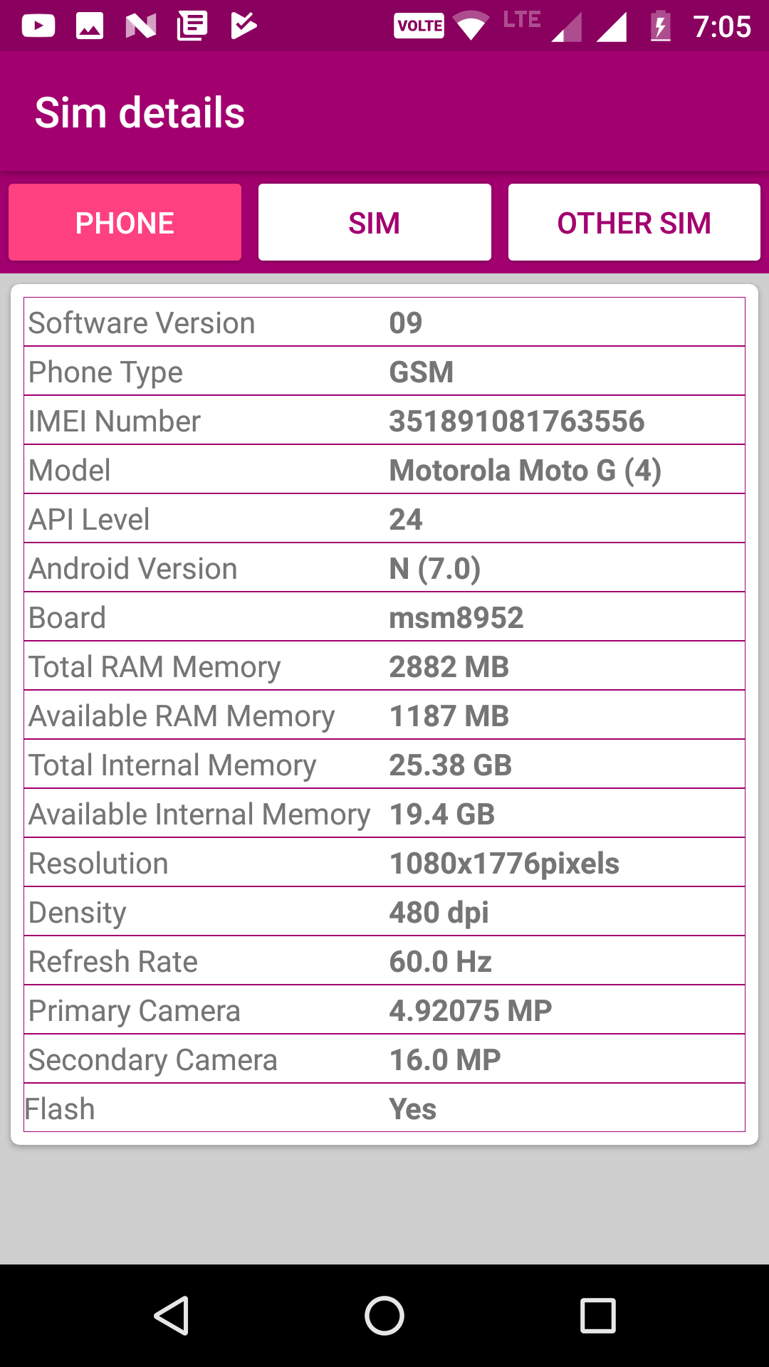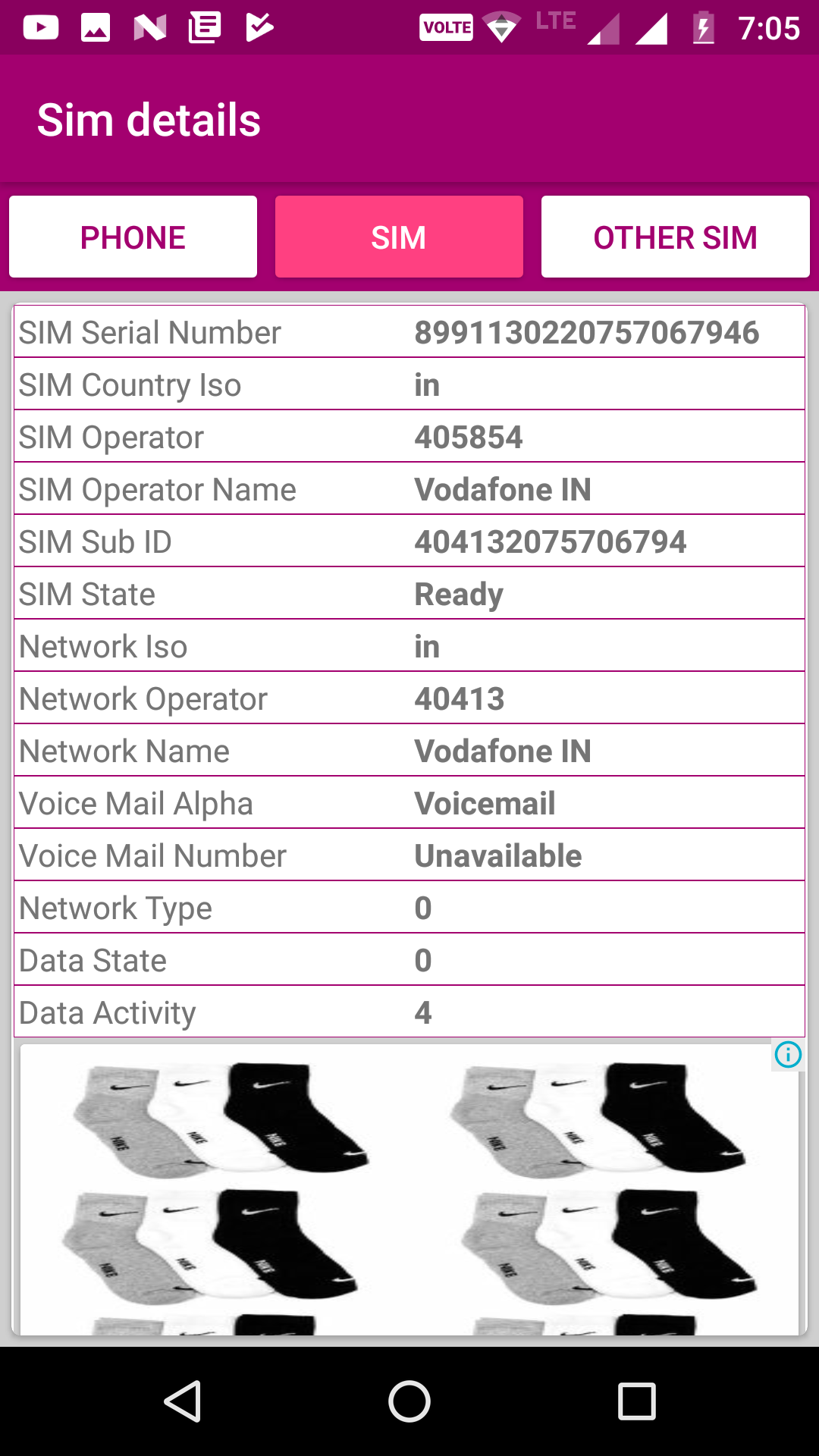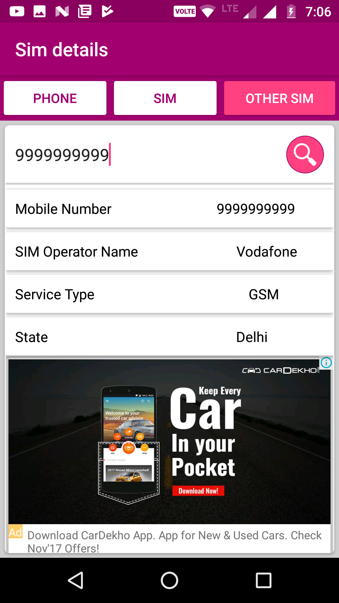 SIM details and Phone number location