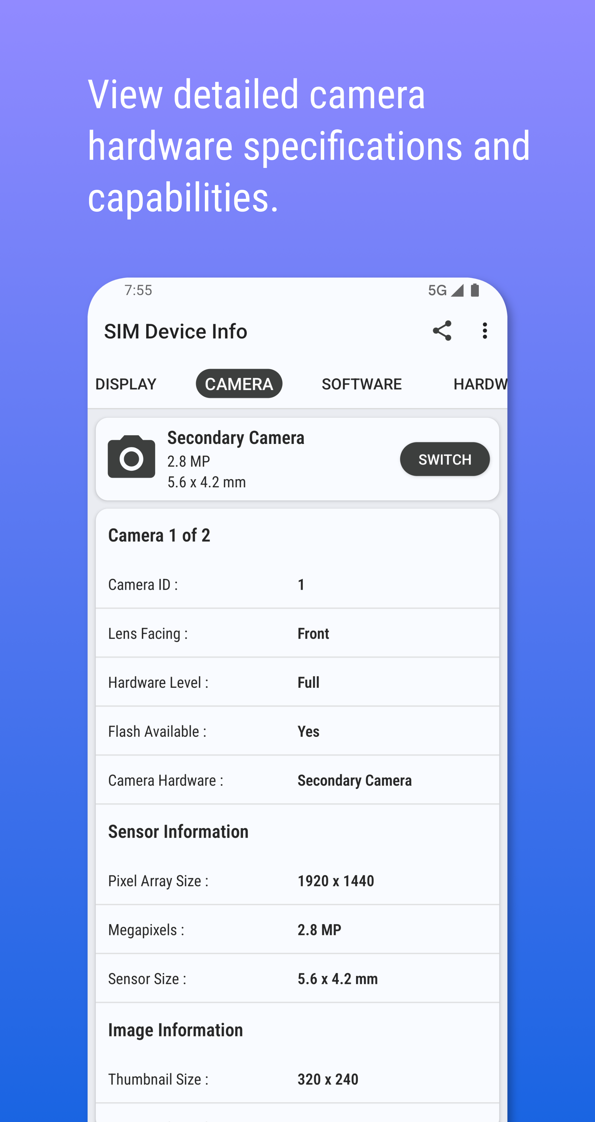 - Advanced Camera Details: Access more technical information about your camera hardware.
