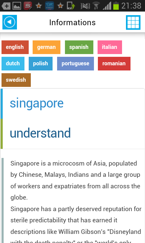 - multilingual city information about transport, food, history, airports and many others information like clima table or eat & events (offline)