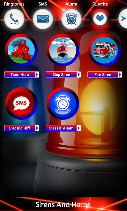 Siren and Horns app is new Android™ app with the best siren ringtones and latest horn sounds. Sirens and Horns is very popular prank app, good for having fun. We made soundboard with most popular sirens and horns ringtones and top sounds. Download app for free and you can personalize the default ringtone, the ringtone for a specific contact, the notification sound and the alarm sound. Siren and horn sound effects are good to make noise, to make jokes with friends or to annoy someone. Police sirens, emergency sirens, cartoon siren, laser, boat siren, swiss police and many other. Sirens and Horns app offers you the biggest collection of most popular tones, loud alarm sounds and the best ringtones for smartphones. Siren sounds fire truck , car alarm, then long beep, ambulance siren or train siren can sounds real and frighten somebody, and you will laugh. Siren text tones can be interesting for kids. They can play plenty of police remix tones, car sirens or ship horns and make a fun all day. Yes, this is perfect funny app for everybody. If you are bored with your usually ringtones and sms sounds, try something new and original. Grab this top horns tones right now and do something good for your android phone and tablet. Cheer up and be cool and hip every time you get a text message or someone rings you with the best free sirens and horns for cell phones. Show your sense of humor every time your phone rings. Pick your favorite free ringtone from this latest sound effects soundboard and set it as a SMS alert notification. Download hot melodies and enjoy the fun they will bring to your mobile phone. Features: - set as ringtone - set as sms / notification - set as alarm - set as favorite - includes 30 ringtones, 20 notifications sounds & 10 alarm tones This free android app is divided into four main sections: new ringtones, sms, alarm and favorite. First section covers latest ringtones that you can install as a ringtone, or assign cool ringtones to each of your contacts! Second section contains sms sounds and notification sounds. Third section includes high quality alarm tones. After you have listened to all 3 sections, among various popular ringtones, you can separate best ringtones into favorite folder, which makes the fourth section of this free application. The application is tested on many android devices and it is very easy to use. It is designed for android phones and tablets. All ringtones included into an app are under public domain or creative commons license, and it is completely free to download and use. Volume in all ringtones was increased in order to ensure maximum quality to its users.