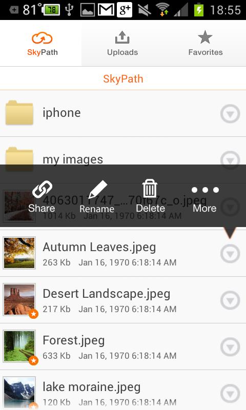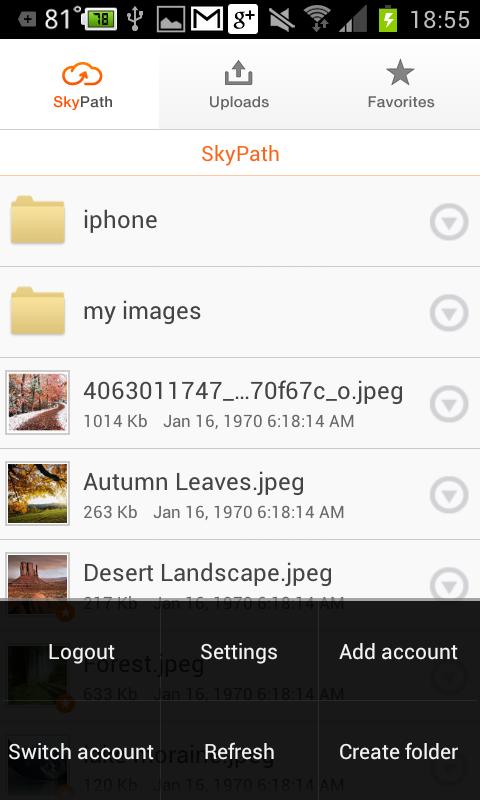 SkyPath is absolutely free to use. Combined with Skypath Desktop application, Skypath for Android allows you to share your mobile photo library with the ImageShack Cloud Service, which in turn mirrors your Android's photo library photos right to your Skypath folder on your PC, mobile photo library backup never been easier! By uploading your mobile photos to Skypath, you will be able to get portable web links which can be shared via Email and to Blogs, Forums, Facebook, Twitter and other Social media sites. The app allows you to simply transfer photos across all of your mobile devices and keep them in sync with your ImageShack account. Features: -- Browse images stored on your ImageShack account from your Android device. -- Upload images from your Android device straight to your ImageShack account. -- Create new folders. -- Delete files and folders. -- Save images into your camera roll or to "Favorites" to view them offline. -- Share image links via email and other Android supported Applications SkyPath is a free ImageShack app that lets you upload, manage and secure your photos directly from your mobile device. The app is also available for your desktop making photo transferring a seamless task with automatic syncing and safe storage in the cloud. We've made sharing images even easier! Simply login with Facebook and you can post photos directly to your timeline. How do you get started? Sign up or login with your Facebook or ImageShack account. You will be asked if you want to sync your photo library. You can refuse by hitting the "Cancel" button. SkyPath App features include: - Managing your ImageShack photo library. - Camera roll autosync. - Variety of sharing options. - Images secured in the cloud.