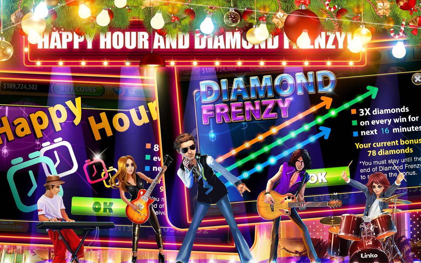 * 20+ slot machines with gorgeous graphics, smooth animations, great bonuses and fantastic sounds.