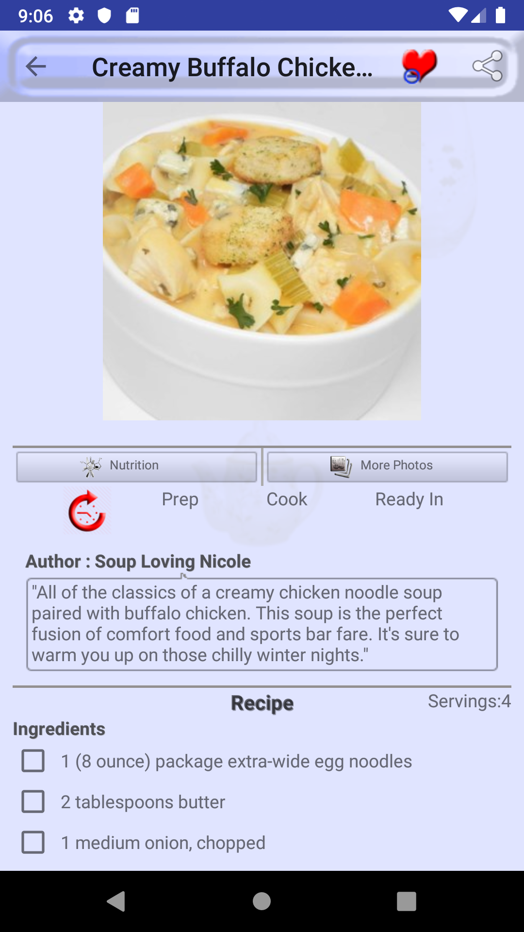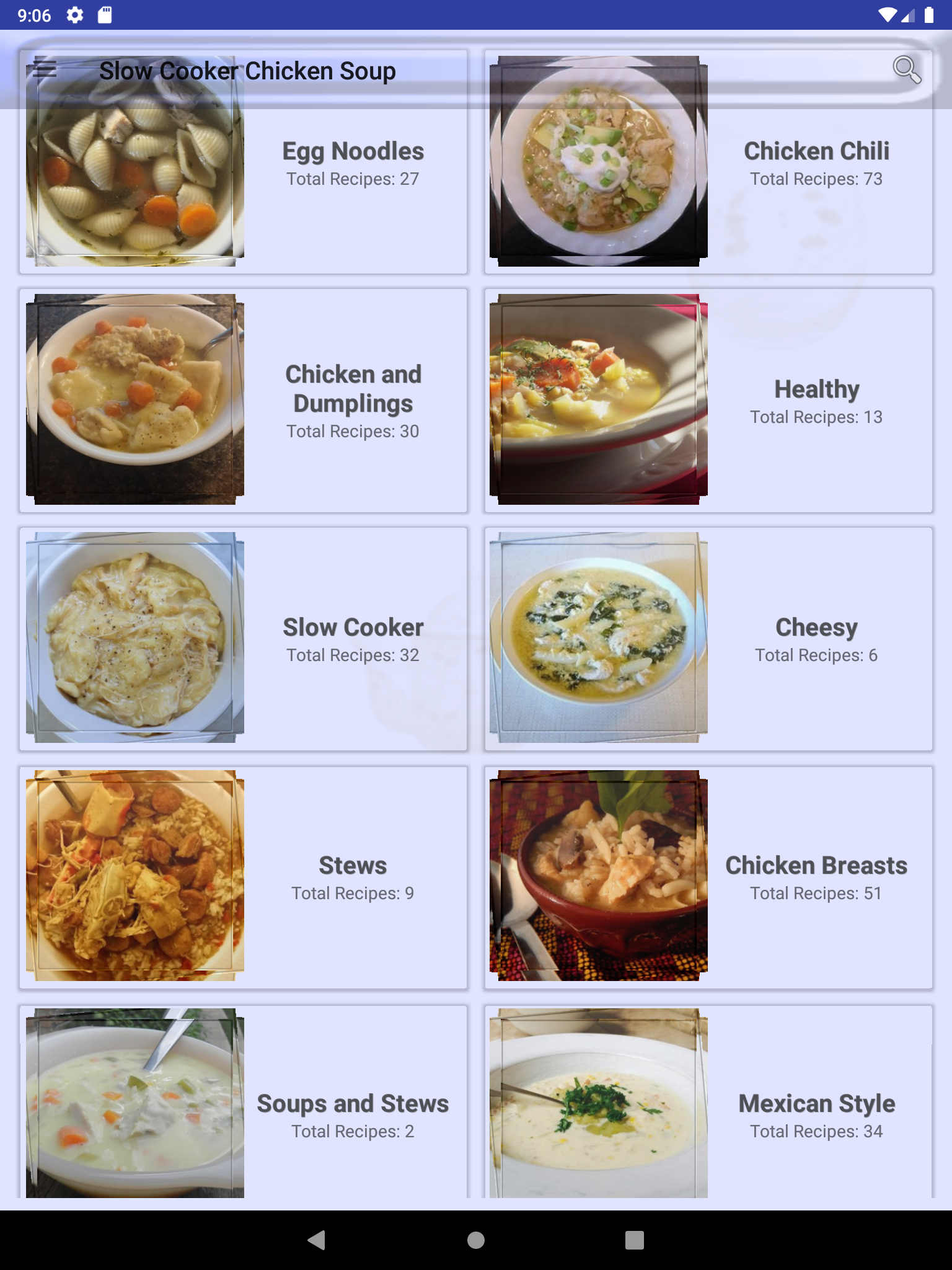 Slow Cooker Chicken Soup is a free cookbook app with numerous healthy Slow Cooker Chicken Soup recipes. All recipes in Slow Cooker Chicken Soup can be made easyily and quickly at home. So If you want to be a chef on your own try Slow Cooker Chicken Soup and we assure you would not regret. Every TasteBuds recipe app is carefully crafted to include top rated cooking recipes and recipe collections that are both healthy and easy to prepare. Some of the recipe collections in Slow Cooker Chicken Soup are: Egg Noodles Chicken Chili Chicken and Dumplings Healthy Slow Cooker Cheesy Stews Chicken Breasts Soups and Stews Mexican Style Chili Corn Chowder Asian Style Chowders Beans and Peas Italian Style Dumplings Main Dish Ham Noodles Quick and Easy Rice Noodles Pork Loin Lemon Chicken Ramen Noodles Gnocchi Pasta Brown Rice Creamy BBQ Butternut Squash Quinoa Noodle Bowl and more... Slow Cooker Chicken Soup comes built-in with rich features such as: • SEARCH: Search recipe by name or by recipe collection • SHOPPING LIST: Our Slow Cooker Chicken Soup app provides features to manage your shopping list of ingredients. Each ingredient is bound to its own recipe. you can mark an ingredient as purchased (strike-through) or completely delete from your recipe shopping list. • FAVORITES: Mark a recipe as favorite recipe and you will not need to search it again in thousands of recipes we provide in Slow Cooker Chicken Soup. All favorite recipes have a dedicated favorite recipes section in menu drawer. • NUTRITION INFORMATION: Almost every recipe in Slow Cooker Chicken Soup comes built-in with nutrition information, so you don't need to worry about your nutrition plan for your favorite Slow Cooker Chicken Soup recipe. • PHOTOS INFORMATION: If you want to see the recipe from different perspectives we got you covered with more photos. • RECIPE TIME: We provide cook time, preparation time, and ready time with servings for each recipe in Slow Cooker Chicken Soup. • SHARE: Share your favorite recipes with anyone using any sharing apps you are using such as Facebook, WhatsApp, Email, ... • DEVICES SUPPORT: Almost all android phones and tablets are suppoted with both portrait and landscape mode. So happy cooking with Slow Cooker Chicken Soup!