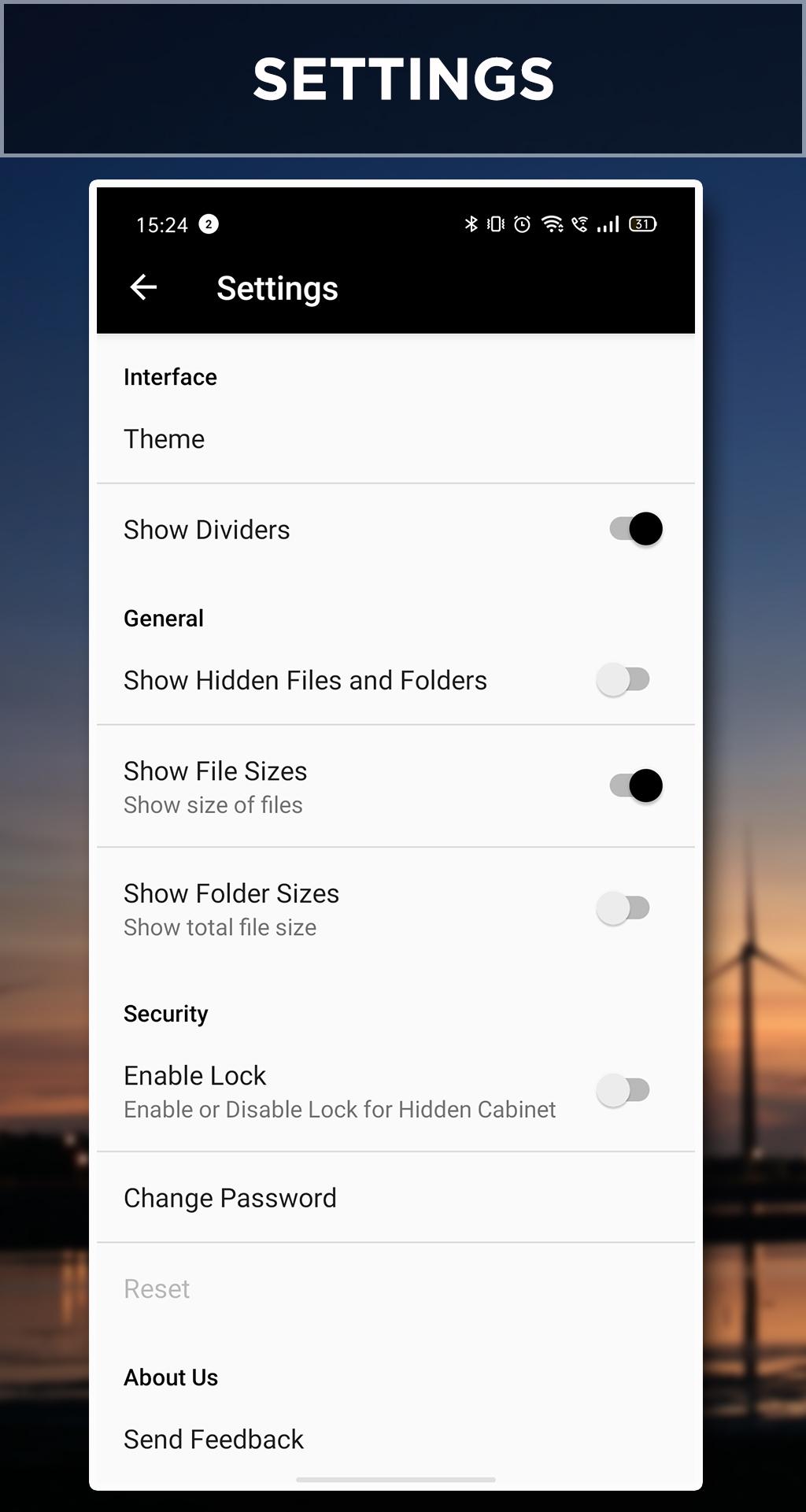 Hidden CabinetYou can hide your files, images, videos with the help of this hidden folder available in our simple and smart file manager. This file explorer can keep all the files safe and secure with password protection.