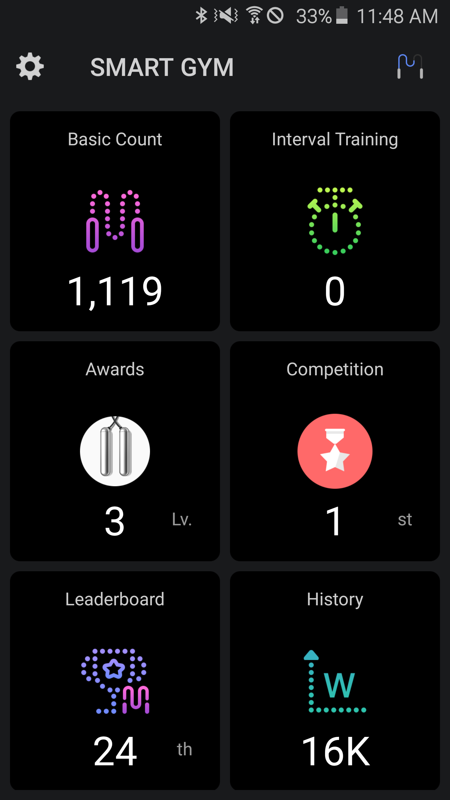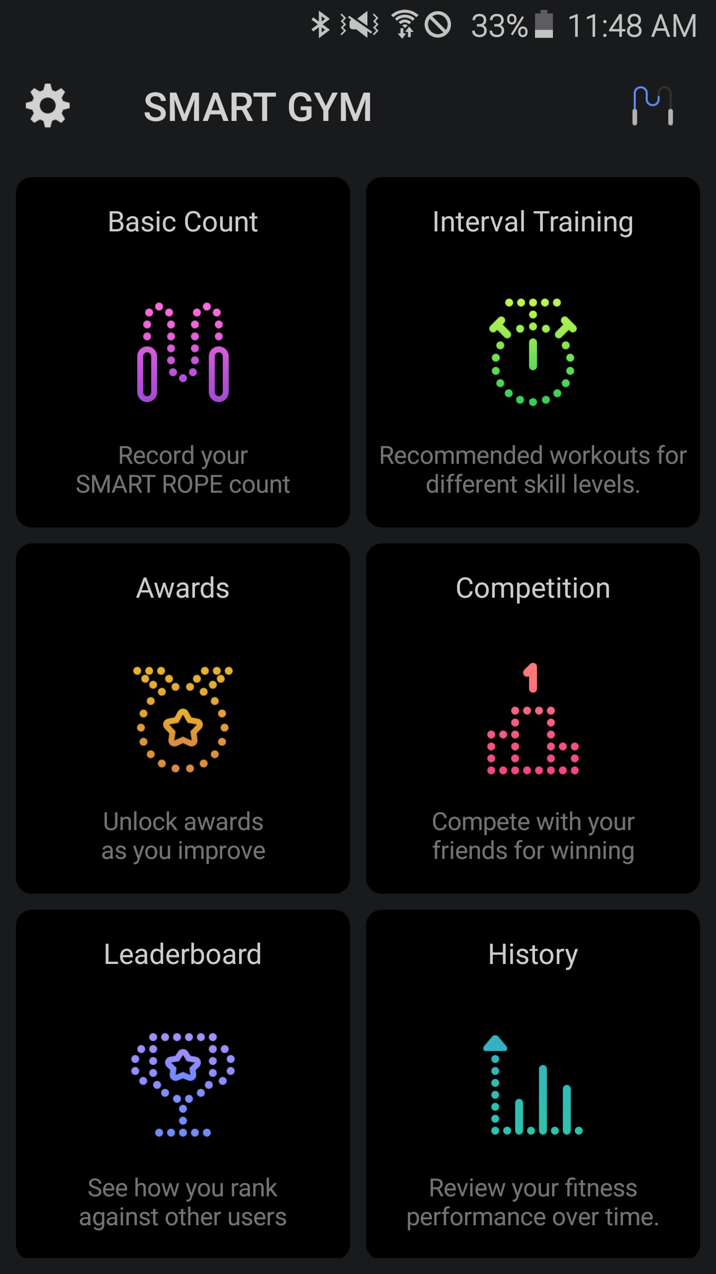 - DEVICE SETTINGS : Monitor and adjust various aspects of Smart Rope, including LED brightness, battery status, firmware upgrades, and Bluetooth pairing.