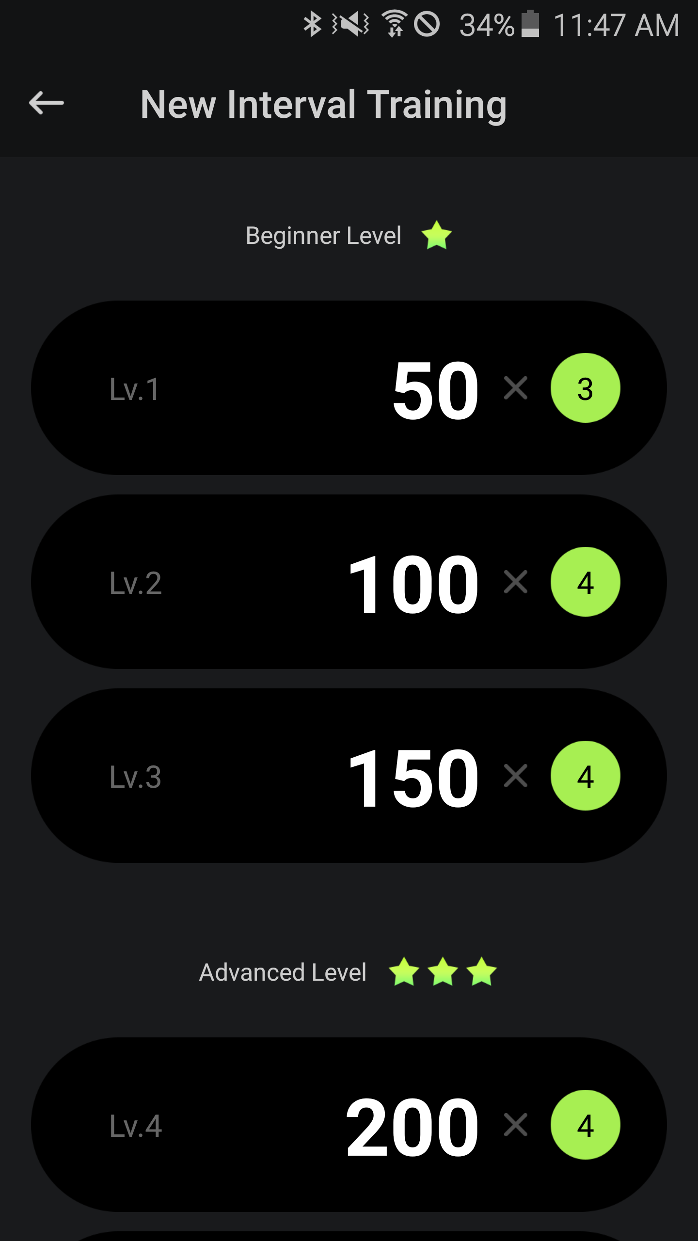 - INTERVAL TRAINING : Select training sessions with recommended workout and rest intervals, based on your skill level and fitness goals.